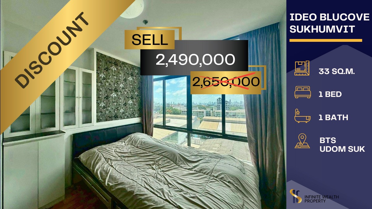 📣 Sell with tenants But the tenant is almost out of contract Interested, please ask for more information. 💥 📍 Location: Sukhumvit - BTS Udomsuk 🏢 Project: IDEO BLUCOVE SUKHUMVIT 📐 Size: 33 sq.m. 🛏️ Room / 1 Bedroom Price: 2,490,000 baht 🏢 Buy-sell-rent Condo next to the electric train 🚄 📞 Interested in making an appointment to see the room/ask for more information : 📲Line: https://lin.ee/pylkibh