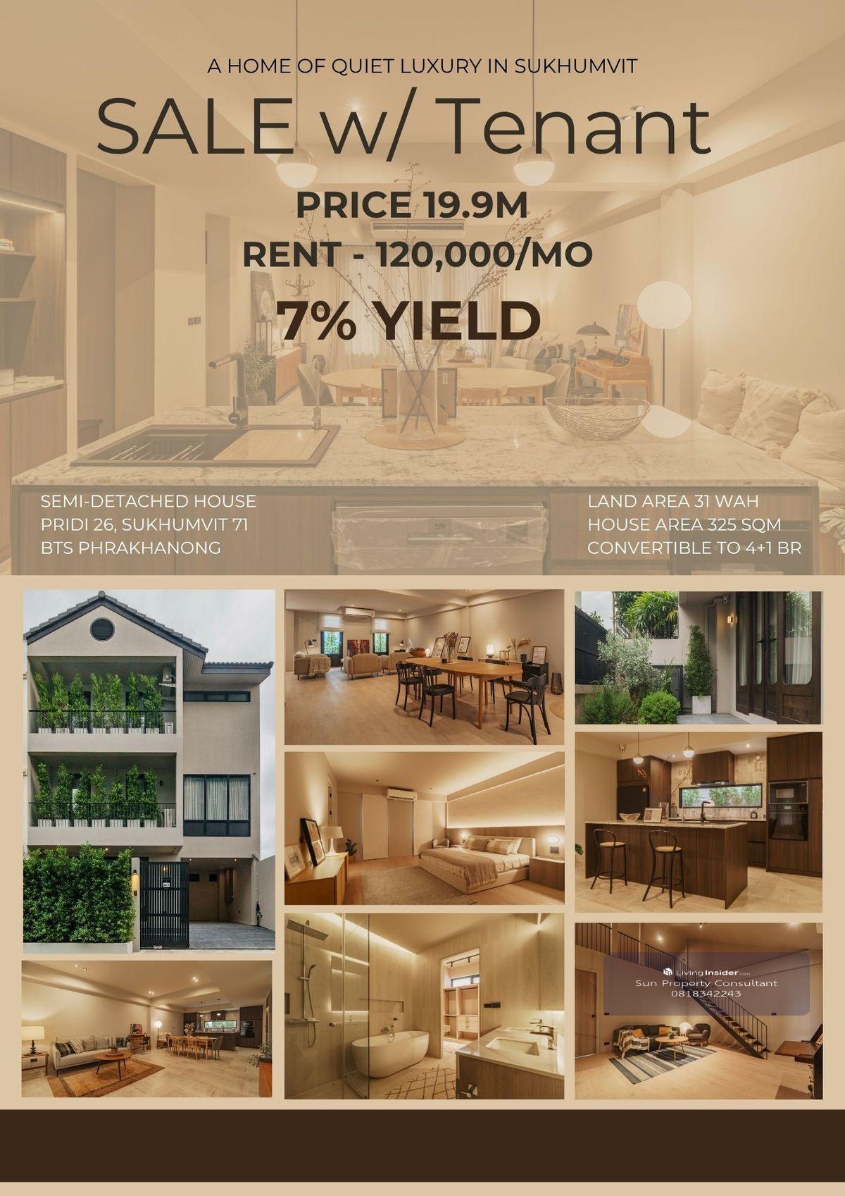 Semi-detached house, area 325 sqm., land 31 wah, 3.5 storey Reliable tenant with work visa. (7% ROI) Newly renovated for residential or commercial, Convenient location. Convertible to 4+1 bedrooms, 5