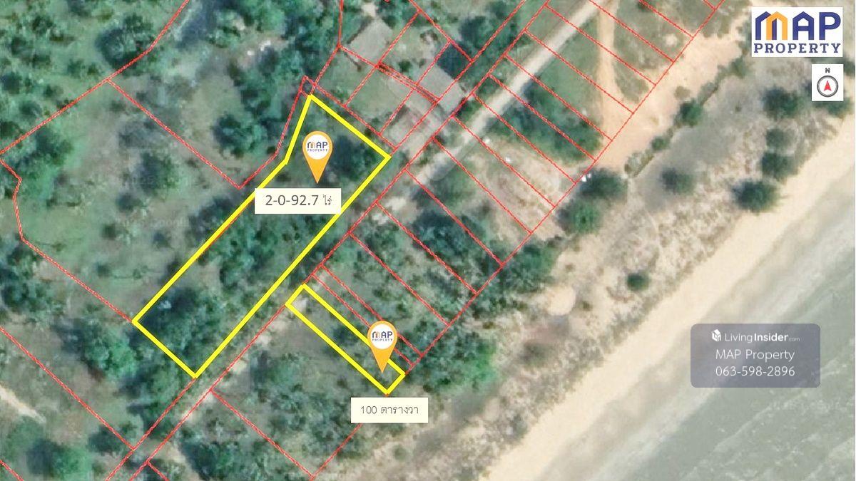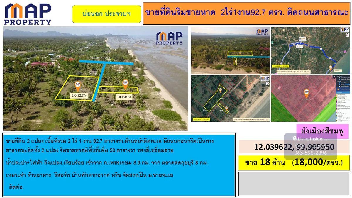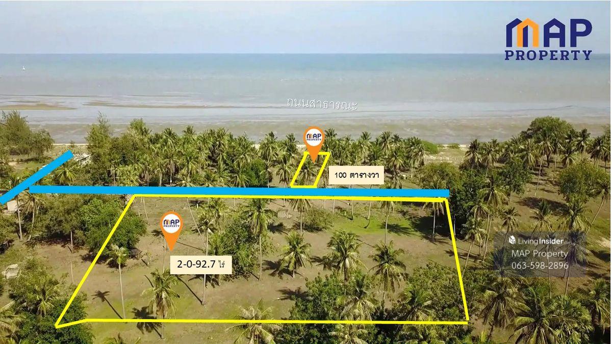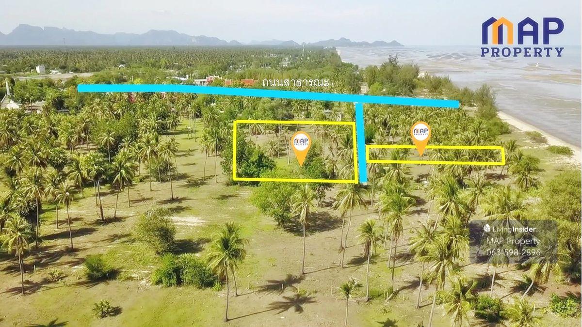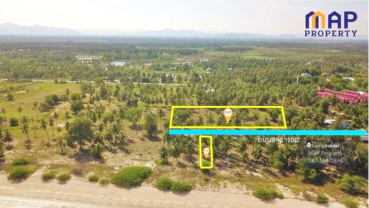 Land for sale 2 plots, The front is near the sea. There is a concrete road as a public road on both plots. -Beachfront has an additional area of ​​50 square wah, beautiful square shape. -Tap water + electricity to the plot. -Enter from Petchkasem Road 8.9 km. -From Kui Buri Fresh Market 8 km. -Suitable for a restaurant, resort, vacation home or a seaside village. For more information, please contact: Chansak 088.779.5655