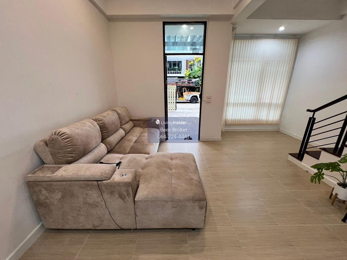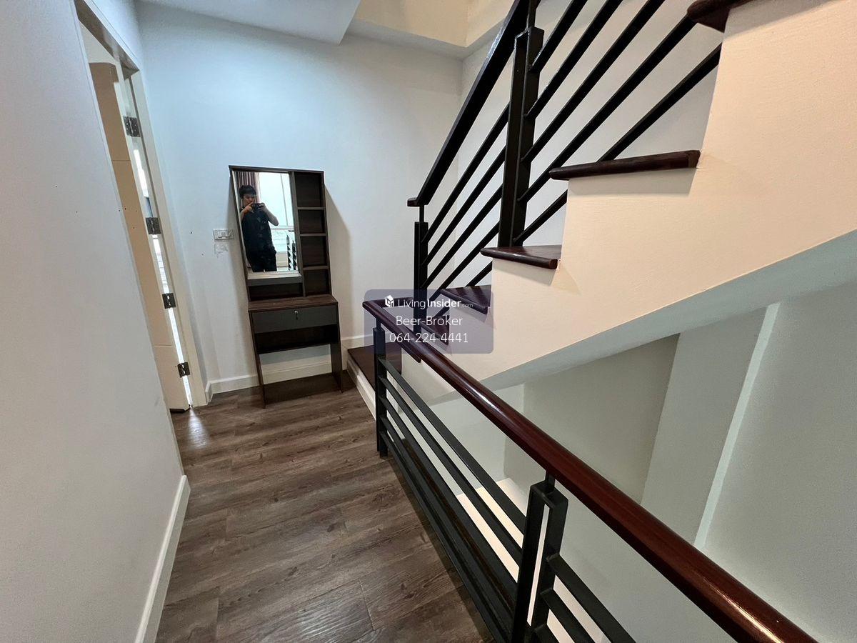 townhouse at Soi Chaeng Watthana 15, next to the government center, modern, beautiful, ready to move in The Sereno by Bonanza Chaeng Watthana - 4-storey townhouse - Land area: 20 sq.w. - Usable area: 167 sq.m. - Number: 3 bedrooms, 3 bathrooms, 1 kitchen, 1 parking space - Front of house direction: South (wind flows into the house all year round) List of free gifts: - Air conditioner, water heater, water pump, water tank - Digital lock door, curtains throughout the house For more information, please contact us at Khun Beer : Call Contact number Line ID : @beerbroker (please include @) or Click 👉 https://lin.ee/pqQqdgP At your service.