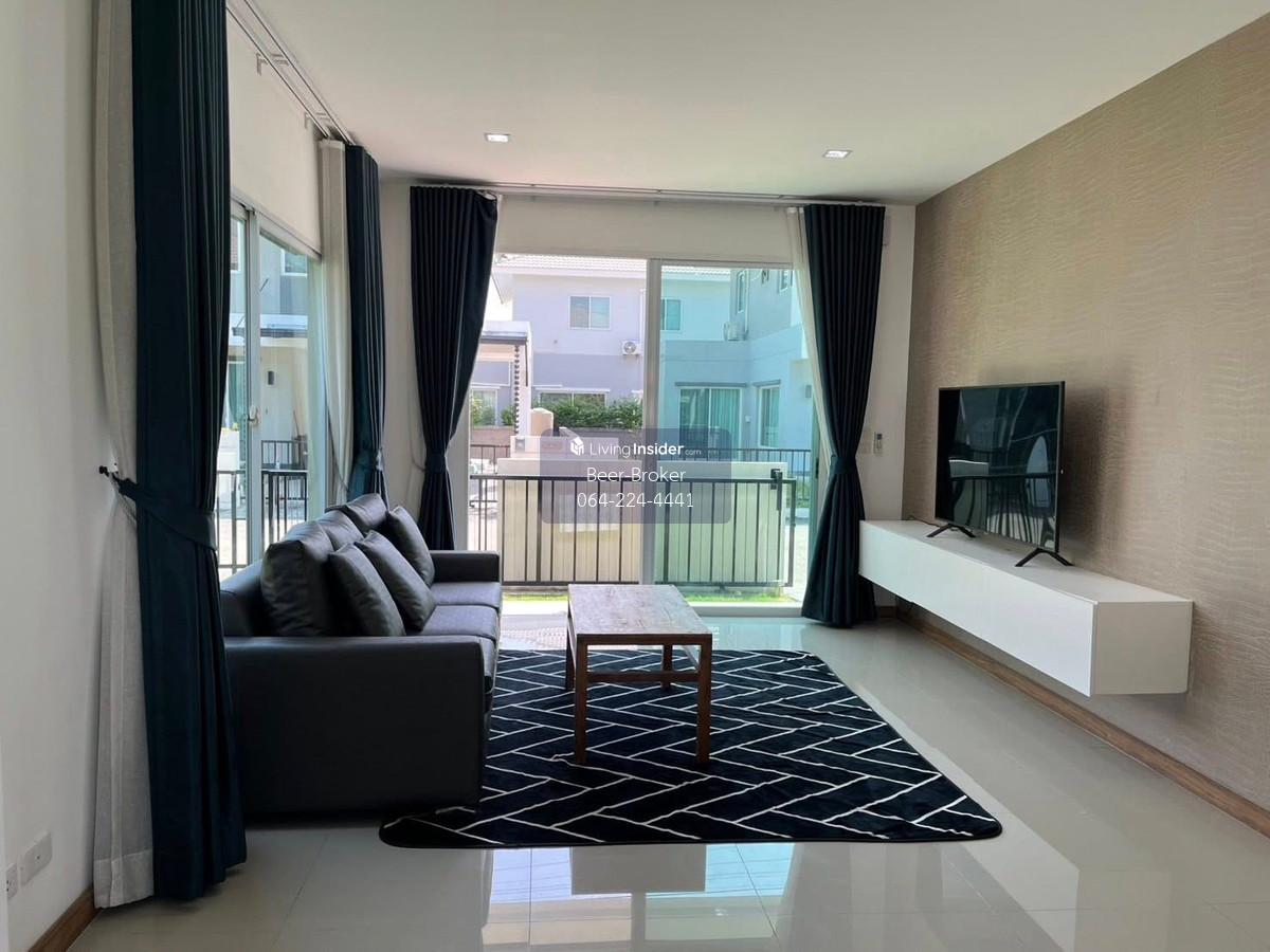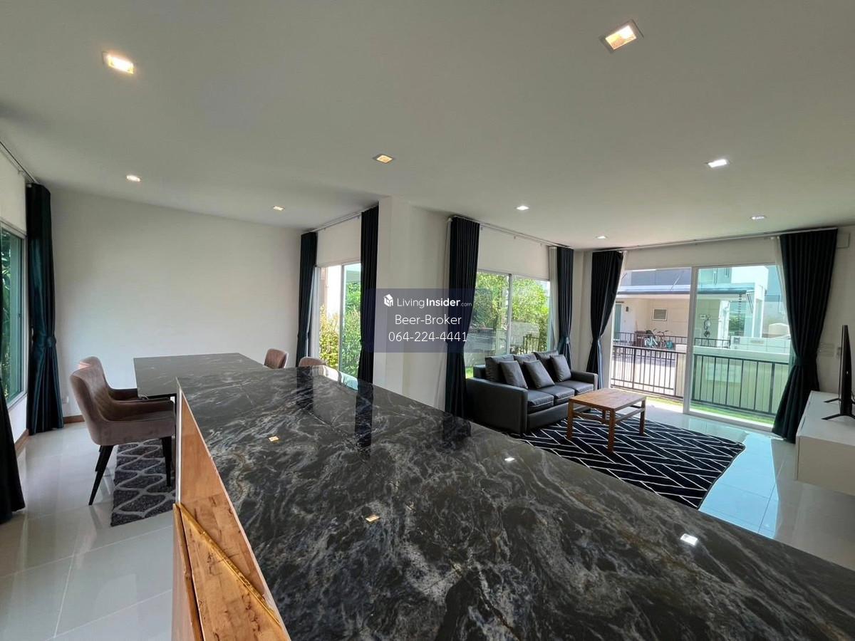 house near Pakkret2 Hospital, Highway 345, and near Robinson Ratchaphruek. Built-in furniture throughout. Casa Premium Ratchaphruek-Chaengwattana Project: - Detached house in a gated community with high security, located on a main road. - Ideal for foreigners and those seeking peace and quiet with convenient transportation. - Built-in furniture throughout. - Land size: 50 sq.wa. - Usable area: 155 sq.m. - 3 bedrooms, 3 bathrooms - Parking for 2 cars. - 5 air conditioners. For more information, please contact us at Khun Beer : Call Contact number Line ID : @beerbroker (please include @) or Click 👉 https://lin.ee/pqQqdgP At your service.