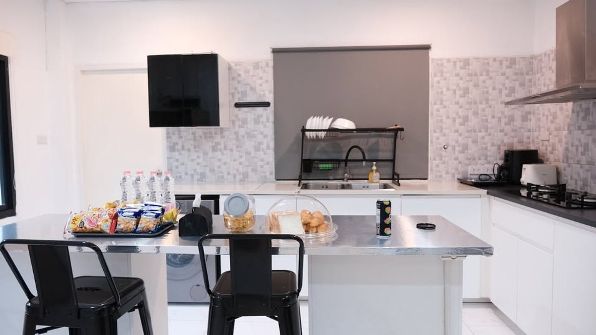 🏡 Modern house feels like living in a pool villa. Can raise animals With a salt-water swimming pool and private garden ✨ Details: 5 bedrooms + 1 multi-purpose room 3 bathrooms Western kitchen with ove