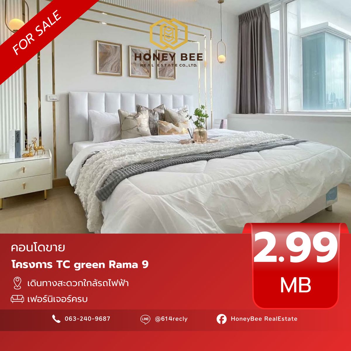 TC Green Rama 9, fully furnished, excellent condition, beautiful room 🔥 📍Code BH02 ✨For sale at only 1,899,000 baht ☀️Details - 30 sq m - 2nd floor, Building B - Studio 📲 Interested in making an appoi