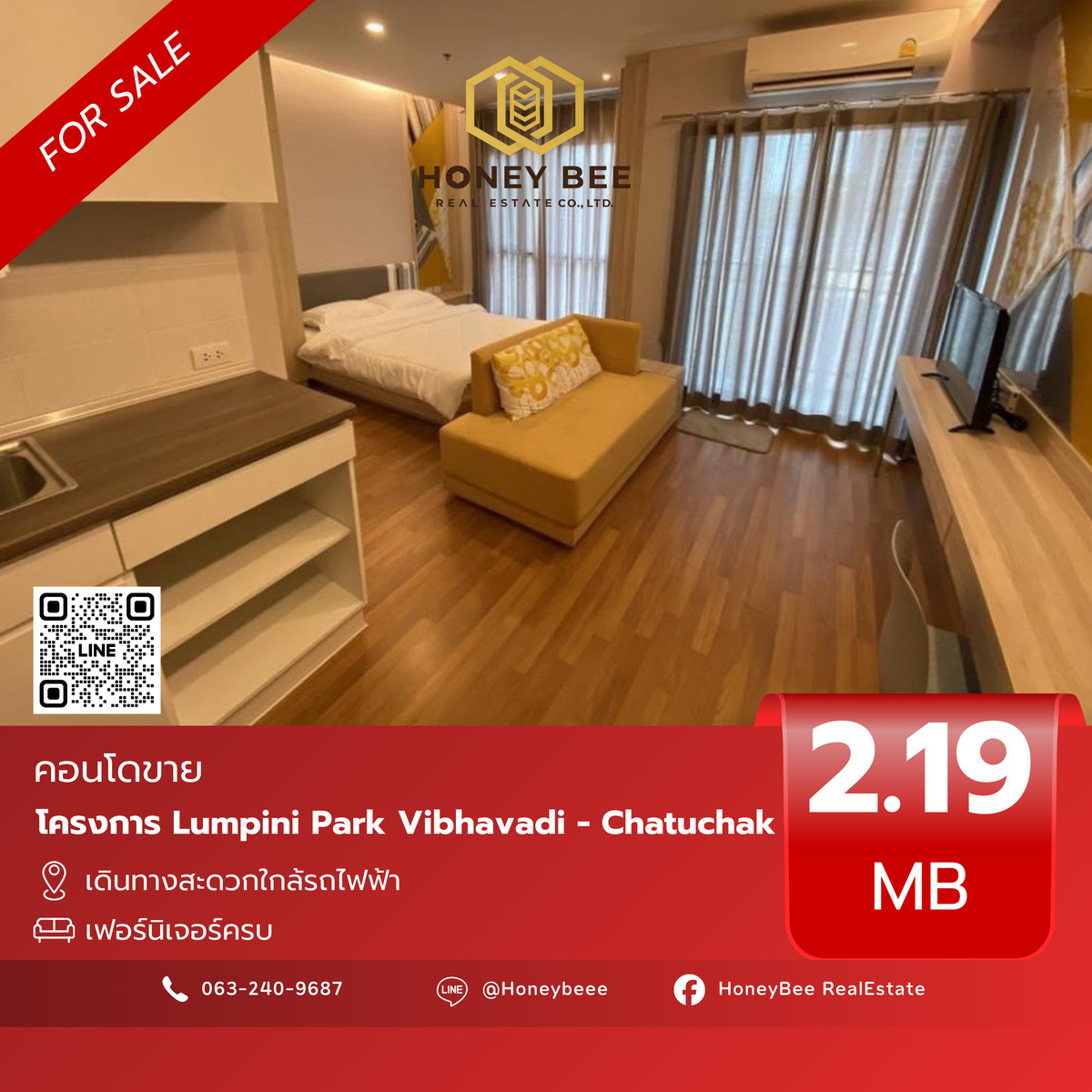 ‼ ️ Lumpini Park Vibhavadi -Chatuchak is fully decorated in good condition. The room is beautiful 🔥 📍 Code BH01 () ✨ Sell only 2.29 million baht ☀️ Details - Size 25 sq.m. - 3rd floor - 1 bedroom Stud