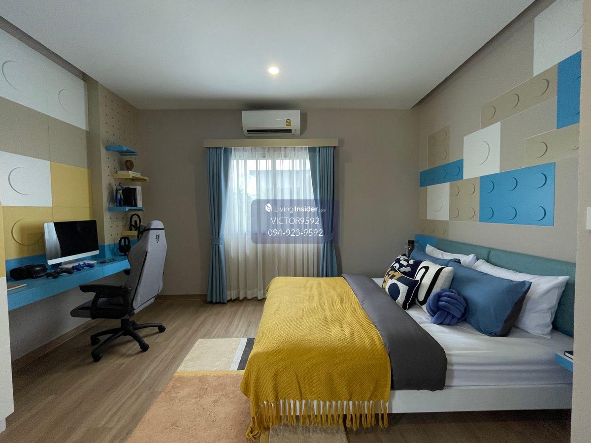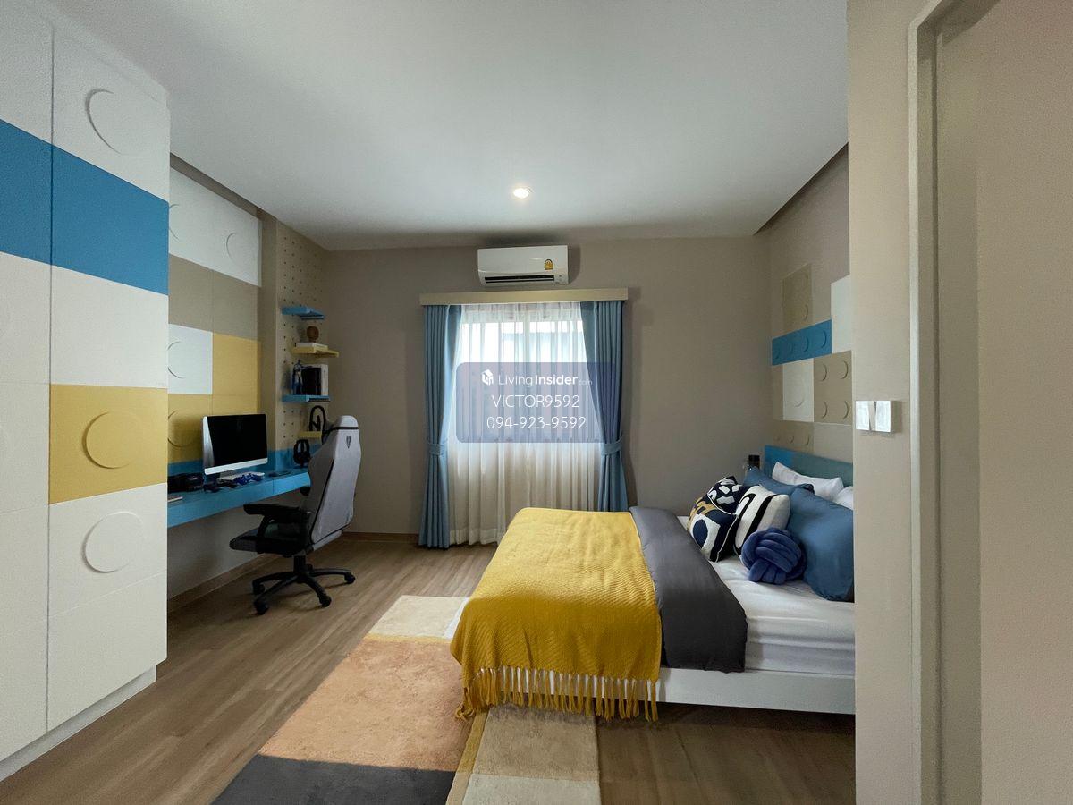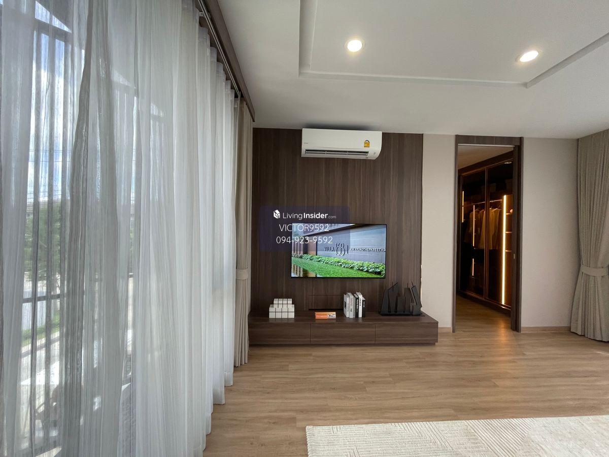 Invited to experience the superior lifestyle at Villa 168, Krungthep Kreetha. 2 -story detached house project that is meticulous in the Modern Tropical style, emphasizing airy, comfortable and private, with white, gray and brown tones that blend in with nature. With functions that meet all needs of modern families Home details: Land size: 80.40 square wah Usable space: 378 square meters Functions: 4 bedrooms 5 bathrooms, 4 parking spaces 1 housewife room Ban facing the east Central fee 45 baht/sq. Complete decoration with furniture and electrical appliances Free promotion - Gardening with large trees And laying grass around the house - Signal system - Air conditioning 18000 BTU - Solar rooftop - CCTV - Air conditioning 12800 BTU - Water pumps and water reserve tanks according to the companys standards - Door Bell - Smart Swict - Water heater - Smart Home - Water heater - Shower partition - Bedroom bathroom 2 - Bedroom shower 3 - Bedroom bathroom 4 -curtains - Mosquito net - Mortgage fee - Central cost 2 years - Procurement fee - Miscellaneous expenses Distinctive with design and innovation: All houses are designed to have a Private Courtyard with perennial wood. To create a shady and private atmosphere In addition, also paying attention to the environment and living The window wall: Helps to cover the eyes but do not block the wind. For the highest privacy Home Automation: Smart house system for easy control Facade battens: Designed to be related to the direction of the sun in each house. Helps to reduce heat protection (Euro Gray): Installed the whole back for the efficiency of heat prevention Heating system with intelligent ventilation partition (Ventible) Junction Box: Supports the installation of EV Charger and Solar Cell for Sustainable Life Home security system: Confident in safety with the installed system to be ready: Magnetic sensor Digital Door Locksmart Doorbell Project facilities: Villa 168 New, Krungthep Kreetha Providing complete facilities for the best quality of life: Clubhouse: Central building in front of the project Consists of: Swimming pool (With separate childrens pool) Fitness Community Garden: Green area in the middle of the project for recreation. Playground: Playing Stadium for Baby Security System: CCTV: Covering both Main Gate and the project A solid fence around the project: for privacy and maximum safety 24 -hour security officers, fence gates, electric scroll fence Location: The project is located in the potential location. Near Motorway and Suvarnabhumi Airport Causing traveling in and out of the city Or travel to other provinces and abroad is easy Villa 168 New, Krungthep Kreetha Is the definition of perfect life Both in design Usage function And complete facilities While also providing the highest privacy and safety for you and your family