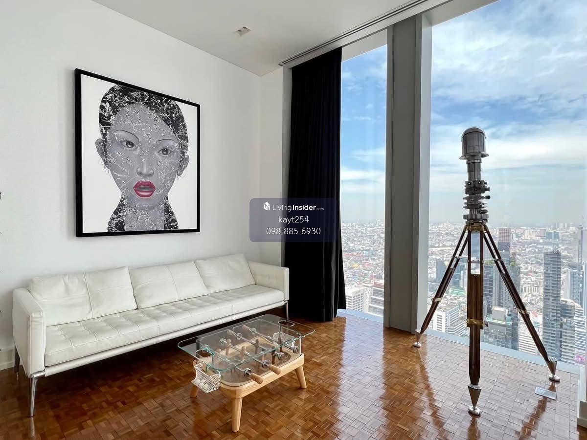 Rent: 900,000 THB/month Experience ultimate luxury in this fully furnished 408.75 sq.m. residence on the 57th floor of The Ritz-Carlton Bangkok. Enjoy panoramic city views, pre