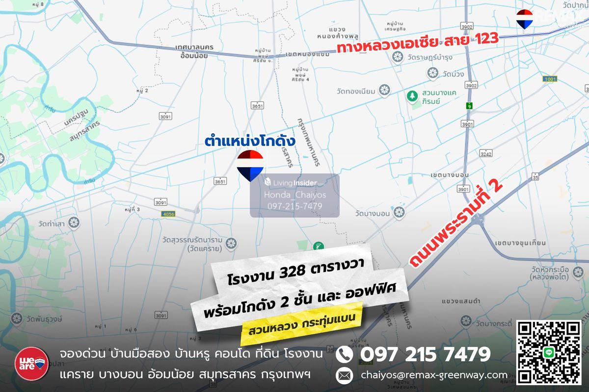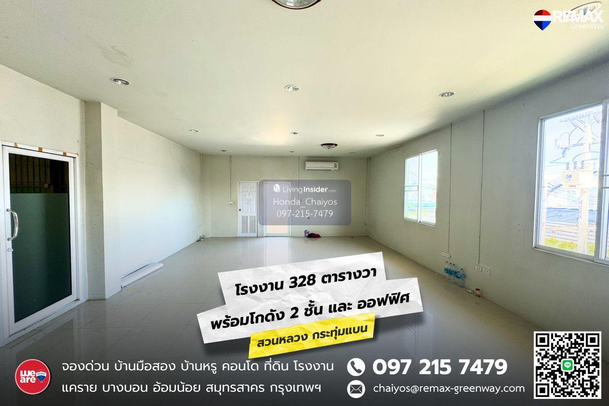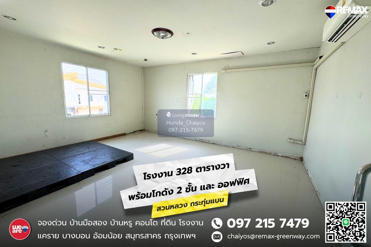 ✨ Selling a factory, Krathum Baen warehouse, 328 square wah, the factory is located on the Khae Rose Canal, Krathum Baen 114, can travel in and out in many ways. Both Phutthasakorn Road, Economic Road or Si Wasawat -Ekachai Road ✨ What you will receive from the factory This warehouse : ✅ Land size 328 square meters, wide soil ✅ There is a space left to the side. Can be added in the future ✅ 2 layers of warehouse, 1000 square meters of living space ✅ There are more than 10 parking spaces ✅ The road in front of the factory is wide. The trailer is comfortable in and out ✅ There are 2 layers of offices coming with the kitchen and bedroom office Nearby locations 📍 Sarasas Wittharaphattharamon School 📍 Thonburi University 📍 Omnoi Municipality 📍 Nong Khaem District Office 📍 Wat Nong Phra 📍 Lotus Krathum Baen 📍 Bang Khae Phirom Garden 📍 Makro Bang Bon 📍 Lotus Rama 2 📍 Central Rama 2 () The offering price is only 20,000,000 baht - Google Map: https://mapP.PP.GO.GL/YW74S5PBWAVCGLSJ9 (?