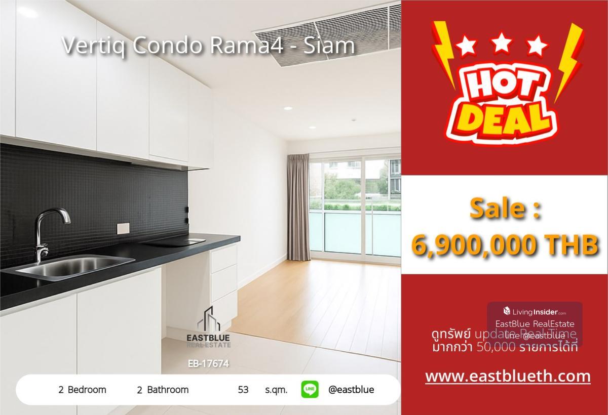 Great value! 2-bedroom, 2-bathroom condo in the Vertiq Condo Rama4 - Siam project, size 53 sq.m., priced at only 6.9 million baht. Get ready for the convenience in the heart of the city with the Vertiq Condo Rama4 - Siam project that meets the modern lifestyle, perfectly suited for every way of living. Room details • 2 bedrooms, 2 bathrooms • Usable area 53 square meters • Selling price 6,900,000 baht Project highlights • Swimming pool, fitness center, and garden • 24-hour security system • Access to the project with Key Card system • Sufficient parking for residents Nearby places • MRT Sam Yan station only 0.65 km • Chamchuri Square, a shopping and dining destination 0.7 km • Siam Paragon, a leading shopping center 2.5 km • Chulalongkorn Hospital 1.9 km • Chulalongkorn University 1.8 km A great opportunity to own a comfortable residence in the city center. Take action and become the owner today! #VertiqCondoRama4Siam #SukhumvitCondo #CondoNearMRT #CondoForSale #RealEstate