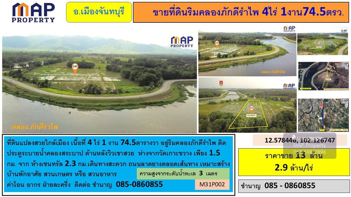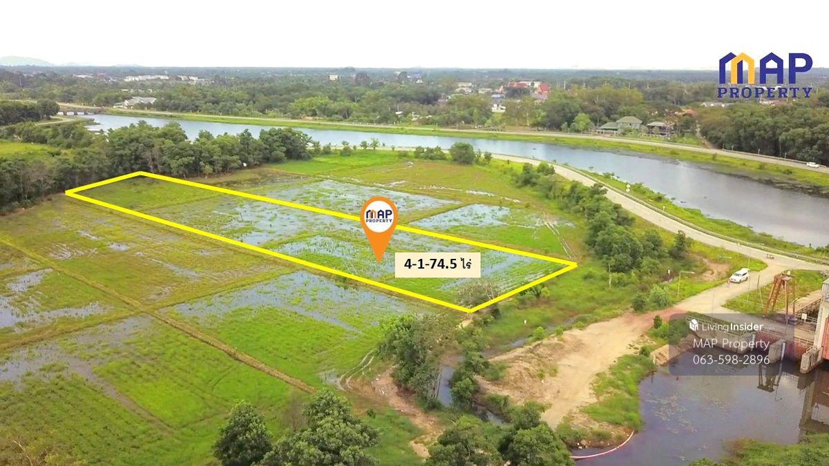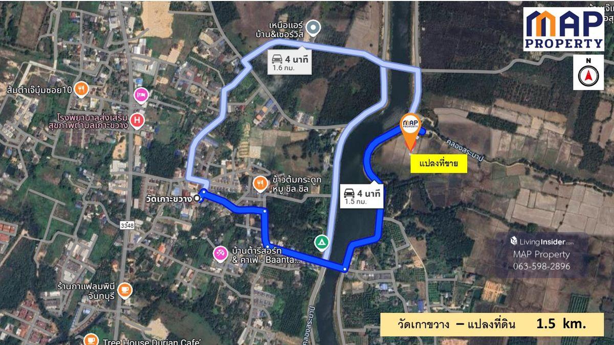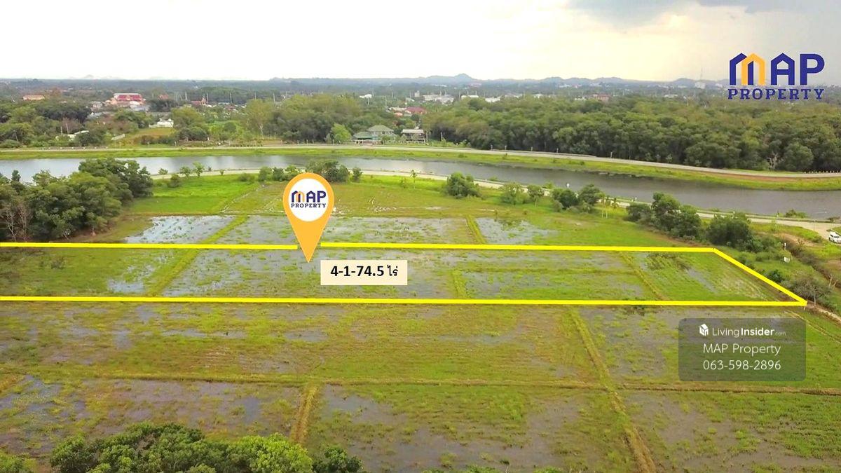 Land for sale along the Phakdi Rampai Canal, 4 rai, 1 ngan, 74.5 sq wa. -Located along the Phakdi Rampai Canal -Adjacent to the Khlong Srabap drainage gate -Beautiful mountain views at the back -Just 1.5 km from Wat Ko Kwang -2.3 km from CentralPlaza, easy access -Pave road all the way Suitable for a residential development, agricultural garden, or restaurant Transfer fees and taxes are split between the parties. Interested parties: Khun Chamnan Contact number