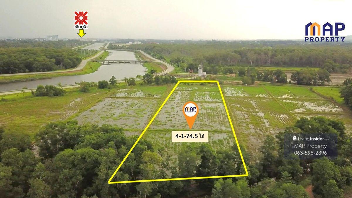 Land for sale along Khlong Phakdi Rampai, 4 rai, 1 ngan, 74.5 sq m.