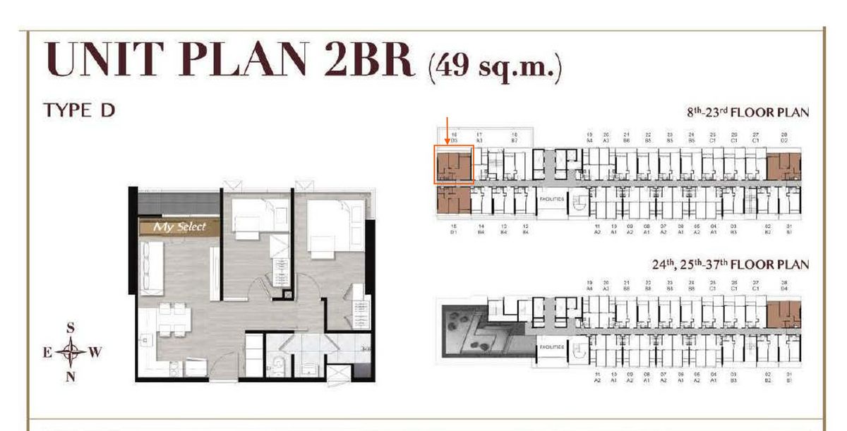 The Niche Pride Taopoon Interchange Condo, corner room, 49 sq m, 14th floor, east/south, city view.