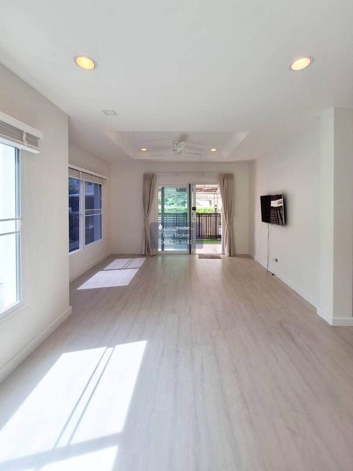 Pet-friendly house with 3-bedroom, newly painted, ready to move in, near the Bang Phlu MRT station. The Centro Rattanathibet - 54 sq.wah of land - Located on Bang Kruai-Sai Noi Road - 2-story detached house, RENATA model - 3 bedrooms, 3 bathrooms - 2 parking spaces, 1 kitchen, 1 living room - High-quality UV-blocking curtains - Blackout blinds and beautifully decorated - 4 air conditioners, 1 water heater - Fully equipped built-in closets - Built-in shoe cabinet in the garage - Remote-controlled gate - Indoor security cameras, ready to use - Solar heat protection system installed - Fully renovated carport - Roof extension at the rear of the house - Newly painted house, ready to move in - Laminate flooring on the ground floor and upper floor - The house faces southwest. For more information, please contact us at Khun Beer : Call Contact number Line ID : @beerbroker (please include @) or Click 👉 https://lin.ee/pqQqdgP At your service.