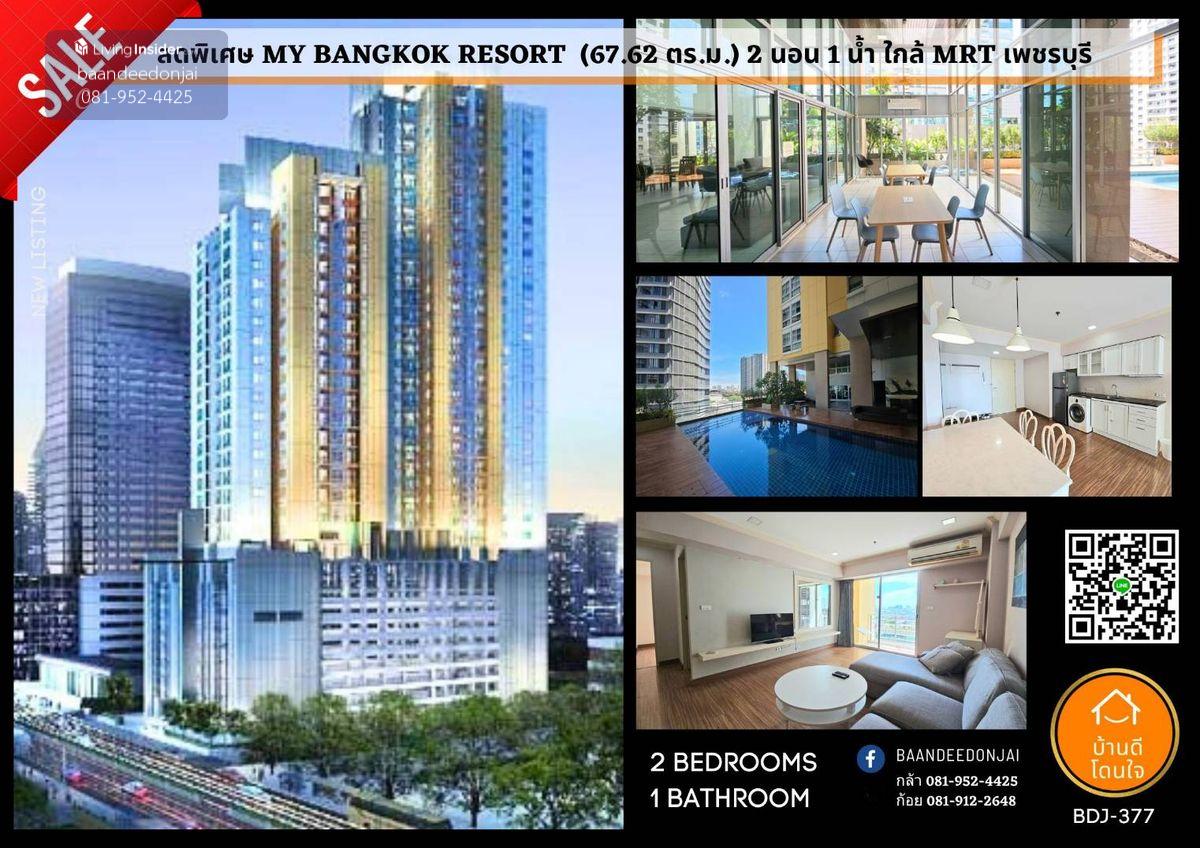 Special price condo, My Resort Bangkok (67.62 sq.m.) 2 bedrooms, 1 water near MRT Phetchaburi