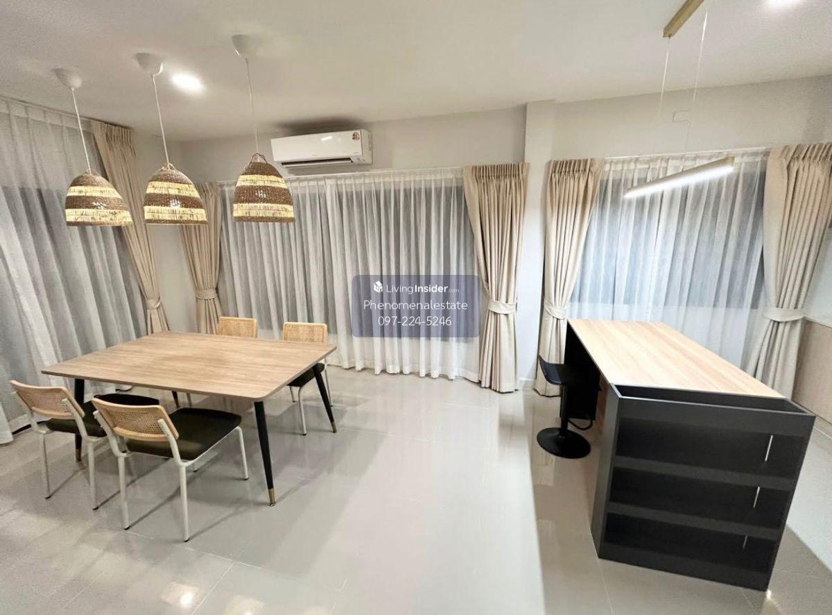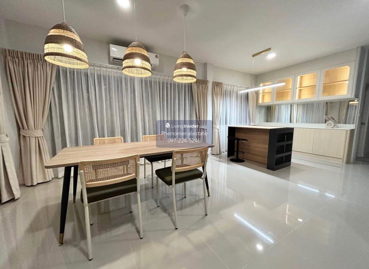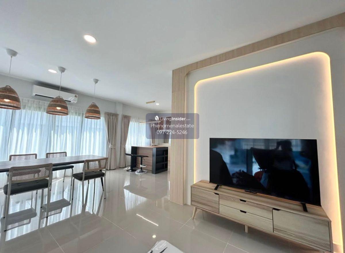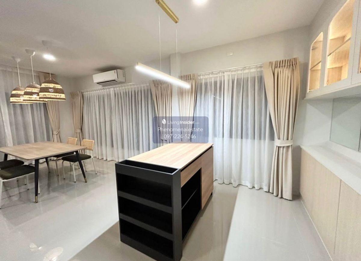 Grande Pleno Sukhumvit Bangna New house for rent near MEGA Bangna, just 700 meters away. Luxurious, comfortable, and ready to move in. If you're looking for a private home with spacious living space and close to everything you need, this is the place for you. House details: 3 bedrooms, 4 bathrooms Parking for 2 cars 162 sq.m. of living space 2.7-meter high ceilings for a spacious and airy feel Beautifully decorated with built-in furniture and a spacious private garden Located next to MEGA Bangna (just 700 meters away), convenient transportation Near the central garden and clubhouse Fully furnished with appliances, ready to move in: 2 TVs 16.2 cu. ft. refrigerator 4 air conditioners Washer/dryer Water heater, microwave, electric stove and range hood Project amenities: 24-hour fitness center Swimming pool Kids club and playground Make an appointment to view the house today For more information, please contact: LINE: @phenomenal.estate Call: Contact number Beautiful home, great location, ready to move in — don't miss this opportunity!