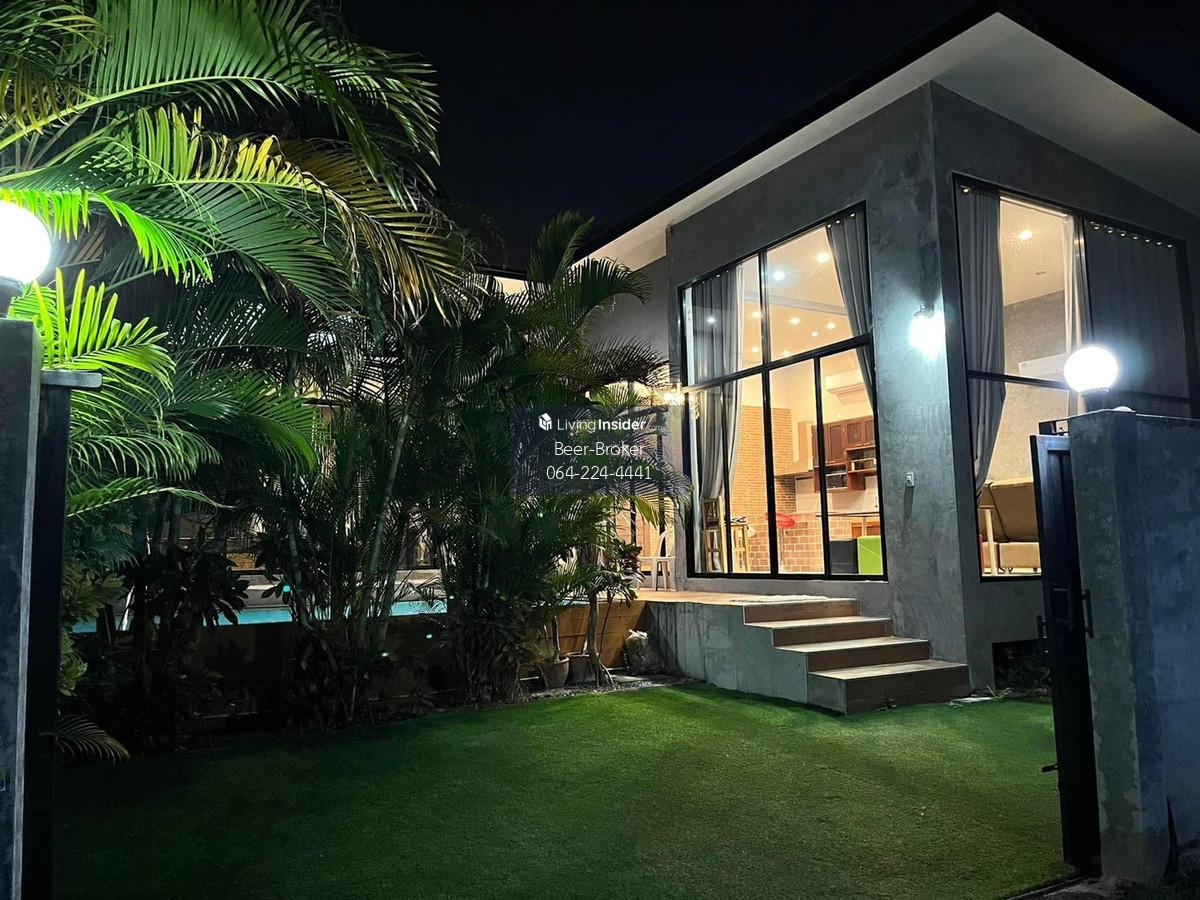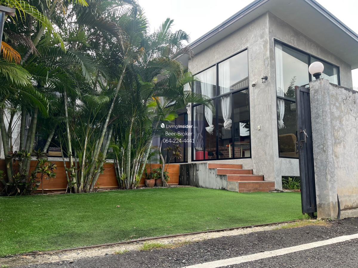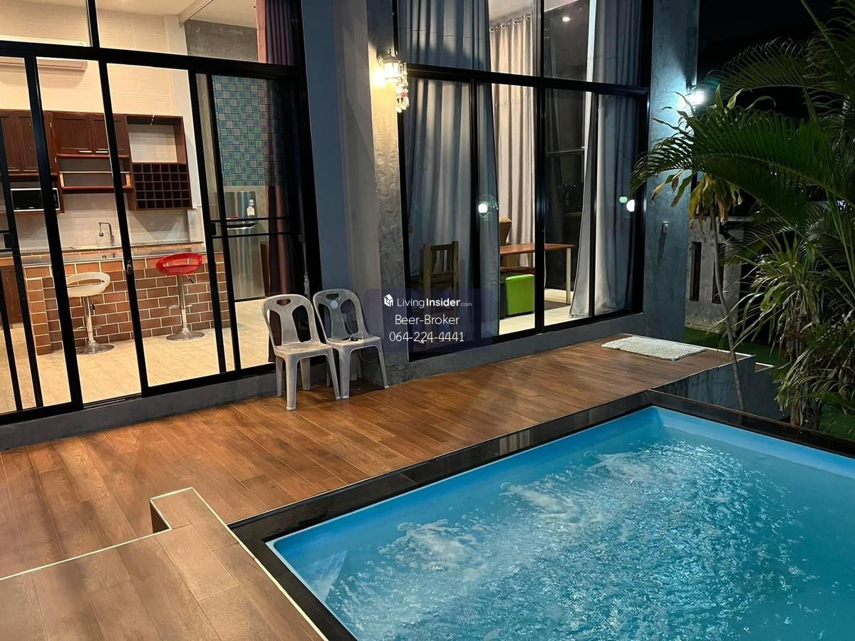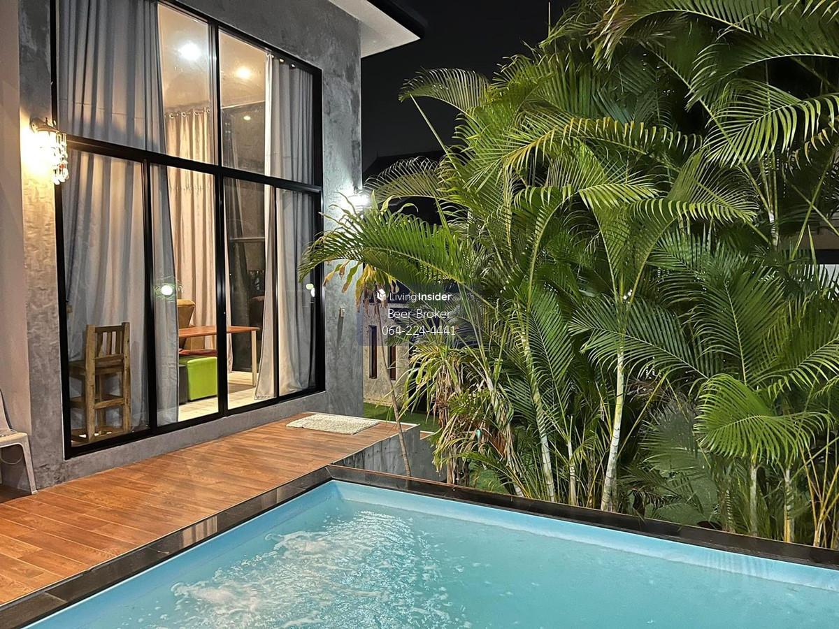 House with private pool near Rangsit University and Srisaman Expressway. 2 bedrooms, 3 bathrooms, parking for 2 cars. House Features: - Single-story house with 4-meter high ceilings for a spacious feel. - Land size: 65 sq.wah. - Usable area: 170 sq.m. - 2 bedrooms, 3 bathrooms - Parking for 2 cars Location: - Near Srisaman Expressway, Robinson, Thai Watsadu, Makro, Tops - 5-10 minutes to Muang Thong - 10-15 minutes to Don Mueang and Rangsit University Furniture: Fully furnished - Wardrobes, beds, mattresses - Jacuzzi and swimming pool with full spa system - 4 air conditioners - 2-burner gas stove, range hood, microwave - 55-inch Smart TV - Washing machine For more information, please contact us at Khun Beer : Call Contact number Line ID : @beerbroker (please include @) or Click 👉 https://lin.ee/pqQqdgP At your service.