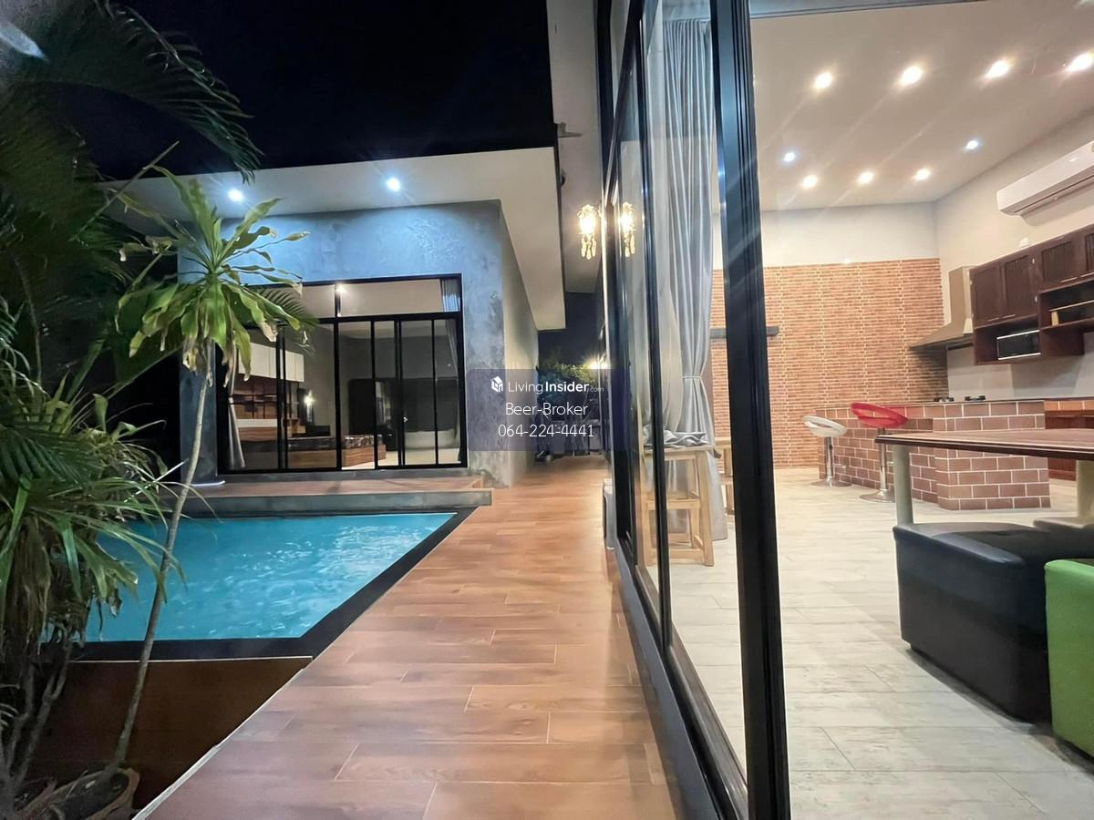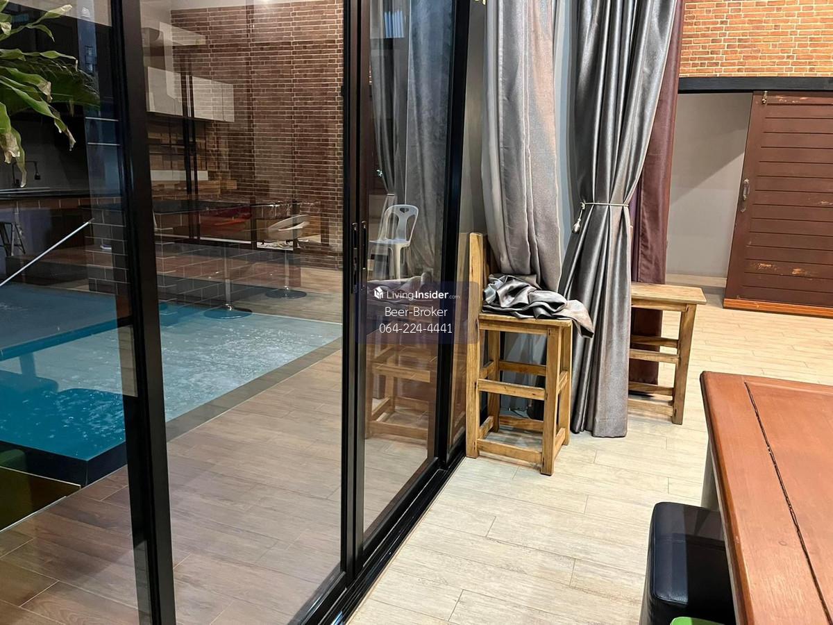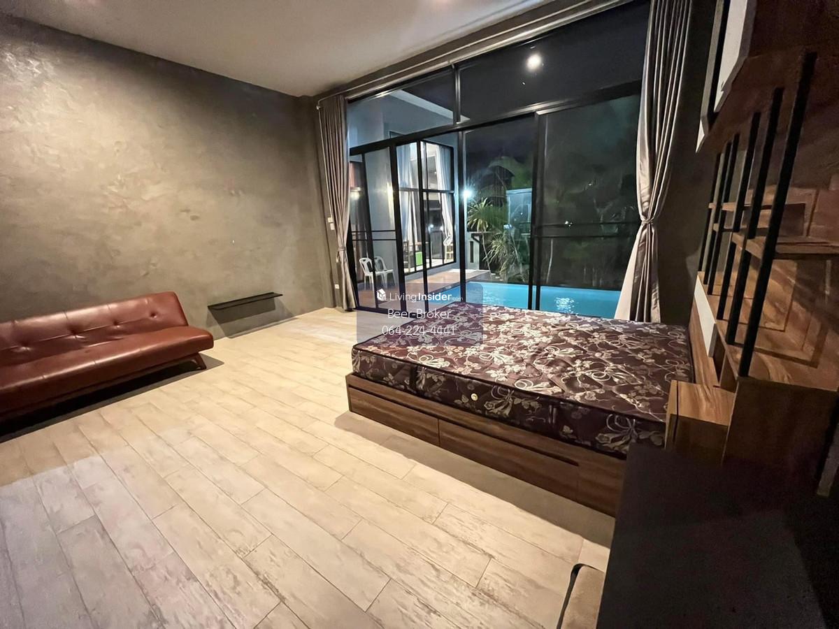House with private pool near the expressway, 2 bedrooms, 3 bathrooms, convenient transportation. House Features: - Single-story house with 4-meter high ceilings for a spacious feel. - Land size: 65 sq.wah. - Usable area: 170 sq.m. - 2 bedrooms, 3 bathrooms - Parking for 2 cars Location: - Near Srisaman Expressway, Robinson, Thai Watsadu, Makro, Tops - 5-10 minutes to Muang Thong - 10-15 minutes to Don Mueang and Rangsit University Furniture: Fully furnished - Wardrobes, beds, mattresses - Jacuzzi and swimming pool with full spa system - 4 air conditioners - 2-burner gas stove, range hood, microwave - 55-inch Smart TV - Washing machine For more information, please contact us at Khun Beer : Call Contact number Line ID : @beerbroker (please include @) or Click 👉 https://lin.ee/pqQqdgP At your service.
