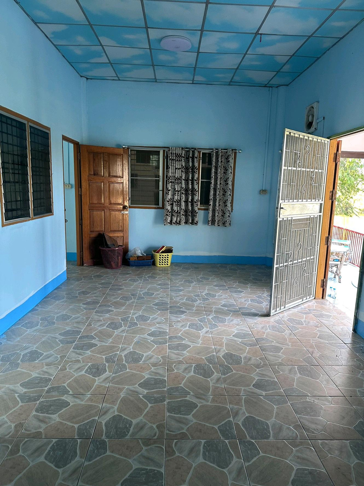 Single -story house, level 50 square meters, fish pond view • 2 bedrooms, 1 bathroom, 1 big kitchen • 2 air conditioners, no furniture • Parking 4 cars • Shady atmosphere There is a fish pond in front