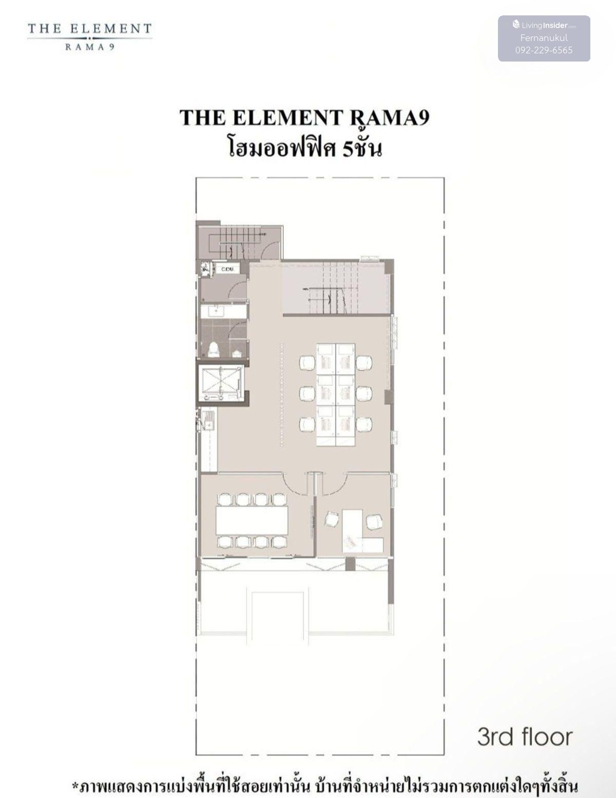 The Element Rama9 Home Office #Fern00042 5 -storey home office With private elevators in the center of Rama 9, complete furniture, ready to use The team can enter the office immediately. 📍 1 minute from The Nine Center 🔑 Ret 300,000baht/month - Area 57 square wah - Usable space in the house 450 sqm. 2-300 meters - 1 elevator Mitsubishi - Automatic gate Ready to remote - The monastery system - SECOM system - Mitsubishi water pump - Near Seven 💬 For More Information or To Arrange A Viewing, Please Contact me Line: @FernageNcy Tel: Click to call. (Khun Fern) 高端五层商住两用办公楼 配备私人电梯,位于拉玛九市中心,精装修,家具齐全,拎包即可办公。 团队可立即入驻办公。 📍 📍 📍 距离 The Nine Center 商场仅 1 分钟路程 🔑 仅需月租 239,000 泰铢,即可入住! () 📐房产详情 : : 57 平方哇 (约 228 平方米) 室内使用面积 : : 450 平方米 总使用面积 : : 560 平方米 停车位 停车位 : 8 辆汽车 (门前可额外停 2 辆) 额外有 200-300 米处可租赁停车场 配备三菱品牌电梯 1 部 火灾报警系统 三菱水泵设备 便利店 💬 如需了解更多信息或预约看房,请联系我 : : Line : @fernagency 电话 : 点击查看 (联系人 : khun fern)