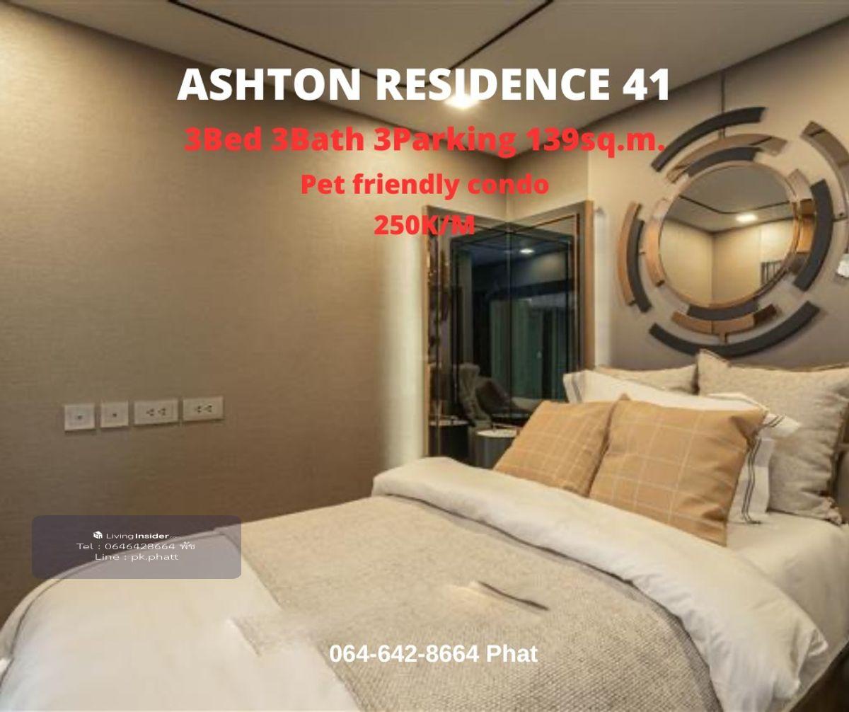 For Rent Ashton Residence 41Pet Friendly Condo3BED 3BATH 3PARKING 139 SQ.M. 250K/MCONTACT: 0646428664 (Phat)