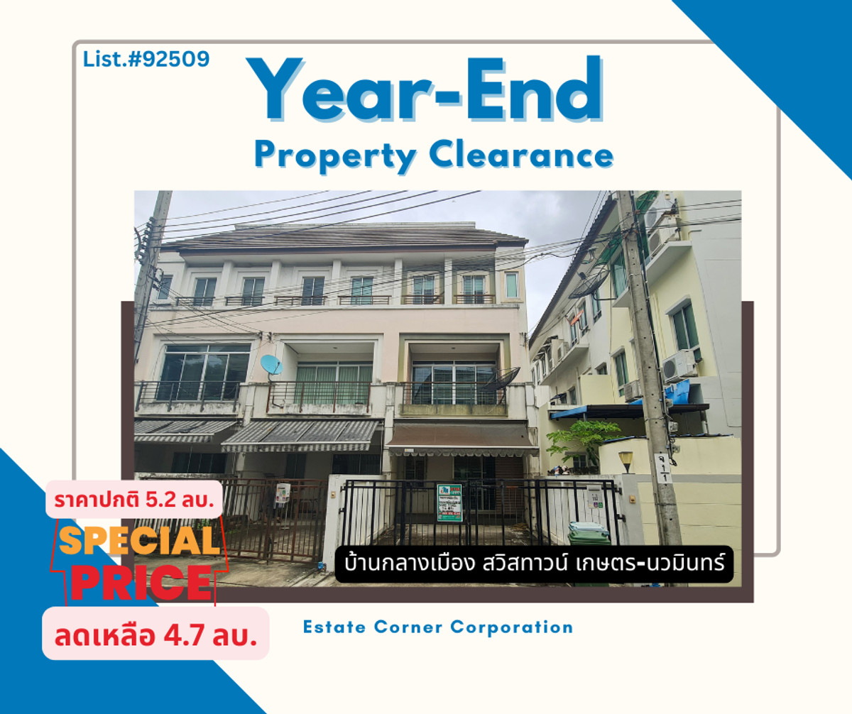 🌟 Good location, good price! 3 -story townhome behind the corner - Ban Klang Swiss Town Agriculture - Nawamin () 📍 Pay only 5.2 million baht. Ready to stay Details: 3 bedrooms | 4 bathrooms | 2 parking Soil area 30.2 sq.w. Usable area 175 square meters Corner house The area is wider than other Billin kitchen + living room, airy Bedroom with Walk-in Closet Suitable for living/home office. Project features: Fitness, swimming pool (? AP Potential location: Near Ram Inthra - At Narong, Kaset -Nawamin, along the expressway Near The Walk, Festival Walk, Lertlao School, Phayathai Nawamin Hospital (? The best price is only 5.2 million baht (Half of the transfer fee) Interested! This beautiful house is not often 📞 Tel: Contact number 💬 Line: @018pverg