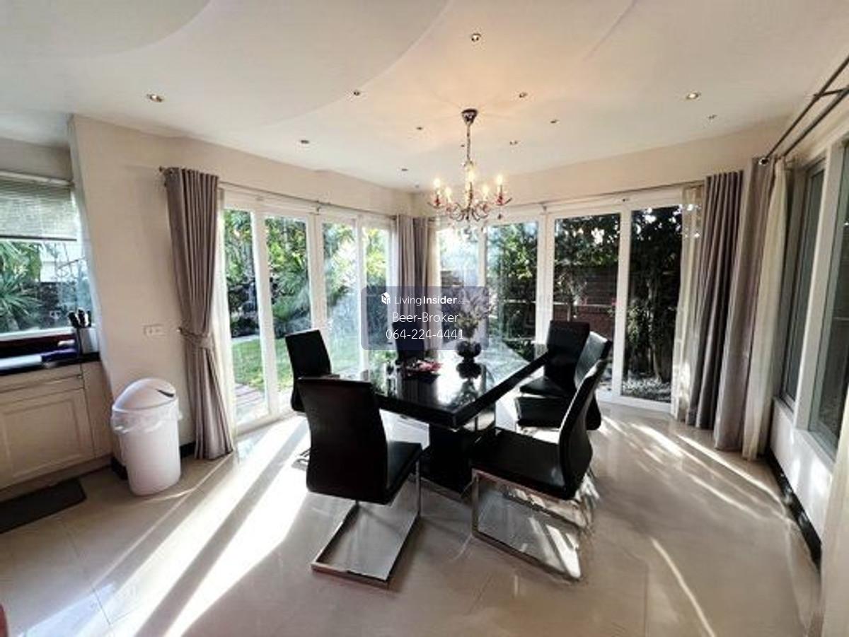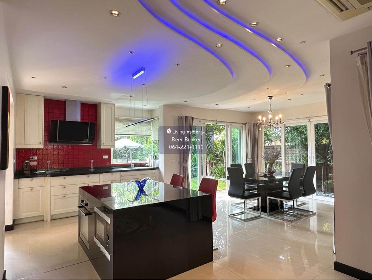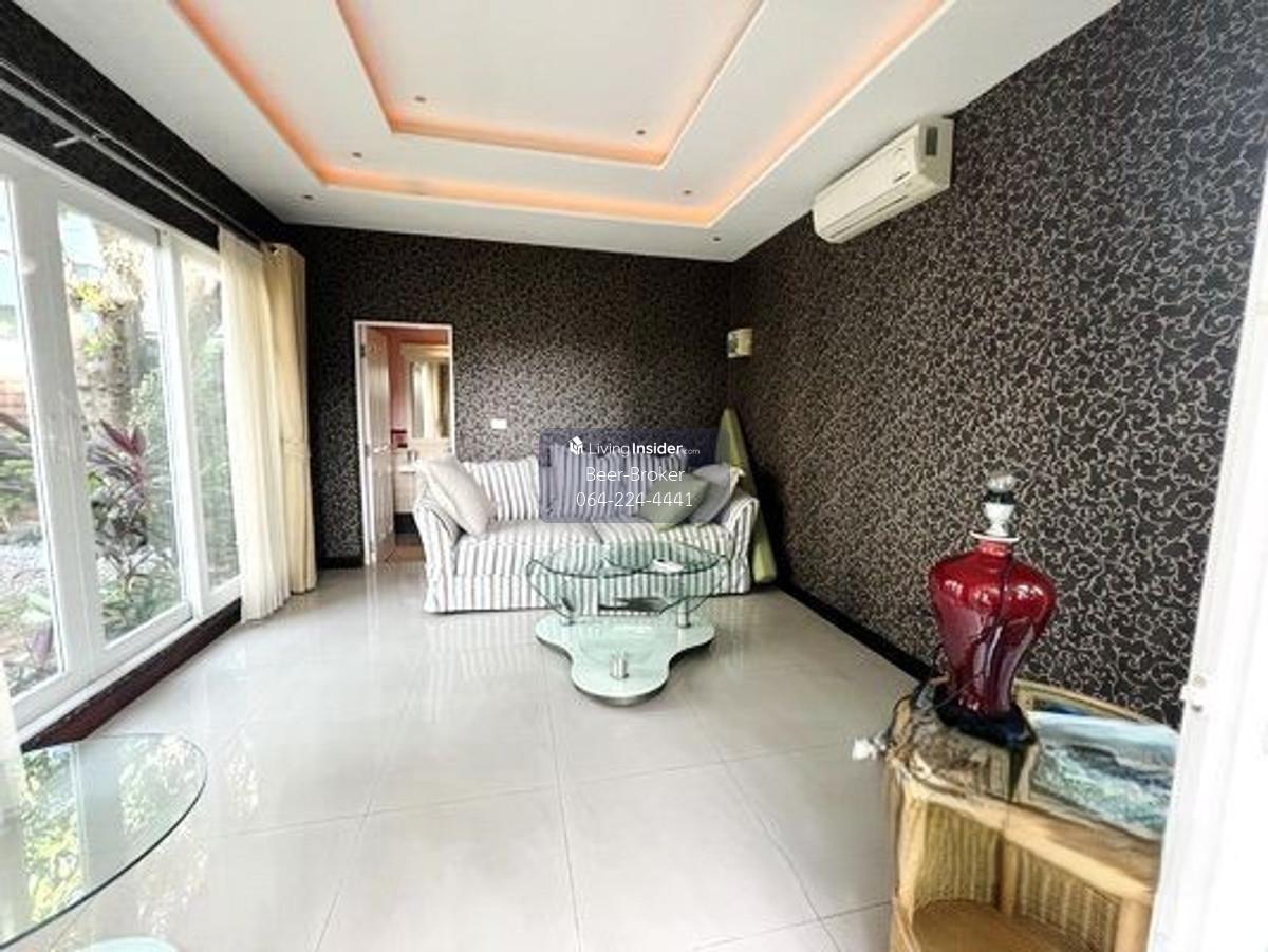 house 130 sq.wah, opposite Denla British (DBS), 4 bedrooms, 4 bathrooms, maid's room, fully furnished. Laddarom Ratchaphruek - Rattanathibet 2 Village - 2-story detached house, 130 sq.wah - 300 sq.m usable area - 4 bedrooms, 4 bathrooms - Separate guesthouse - Separate maid's room - Fully furnished - Attic storage with stairs - 7 air conditioners - Garden and waterfall - Newly renovated Western-style kitchen, separate Thai kitchen - Parking for 2-3 cars For more information, please contact us at Khun Beer : Call Contact number Line ID : @beerbroker (please include @) or Click 👉 https://lin.ee/pqQqdgP At your service.