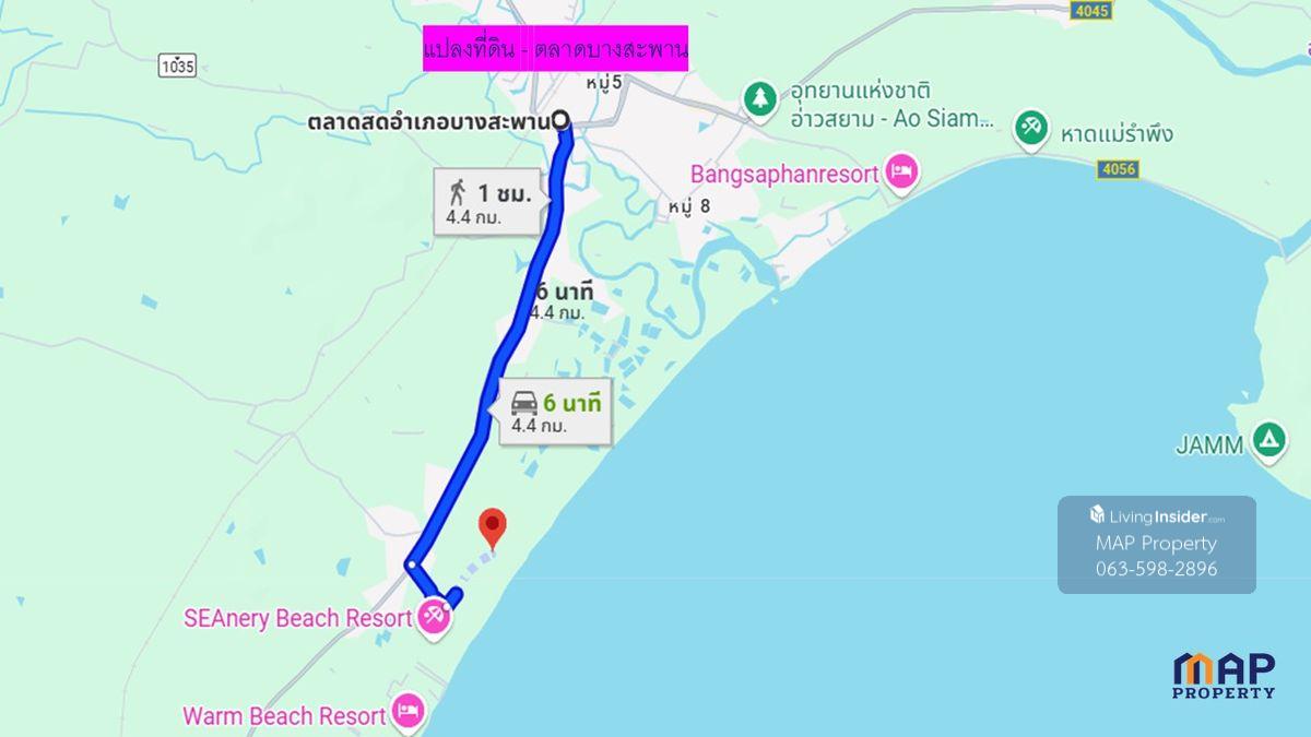 • A beautiful plot of land with a long, sandy beachfront. Ideal for large-scale development projects, including: - Luxury resorts - Boutique hotels - Private pool villas - Leisure real estate projects • With its prime location on a quiet, private beach amidst the pristine nature of Bang Saphan, • It is attracting attention as a growing and increasingly popular new tourist destination. Connected to major marine attractions such as Koh Talu and Koh Sang, popular diving spots. • Approximately 7 kilometers away: Close to communities and amenities, including markets, hospitals, and government offices. • Convenient access: From Highway 3374, access the public alleyway to the plot, which is only 280 meters away. • This land plot is a cost-effective option with the potential for high long-term returns. For more information, please contact: Khun Anumas at Contact number
