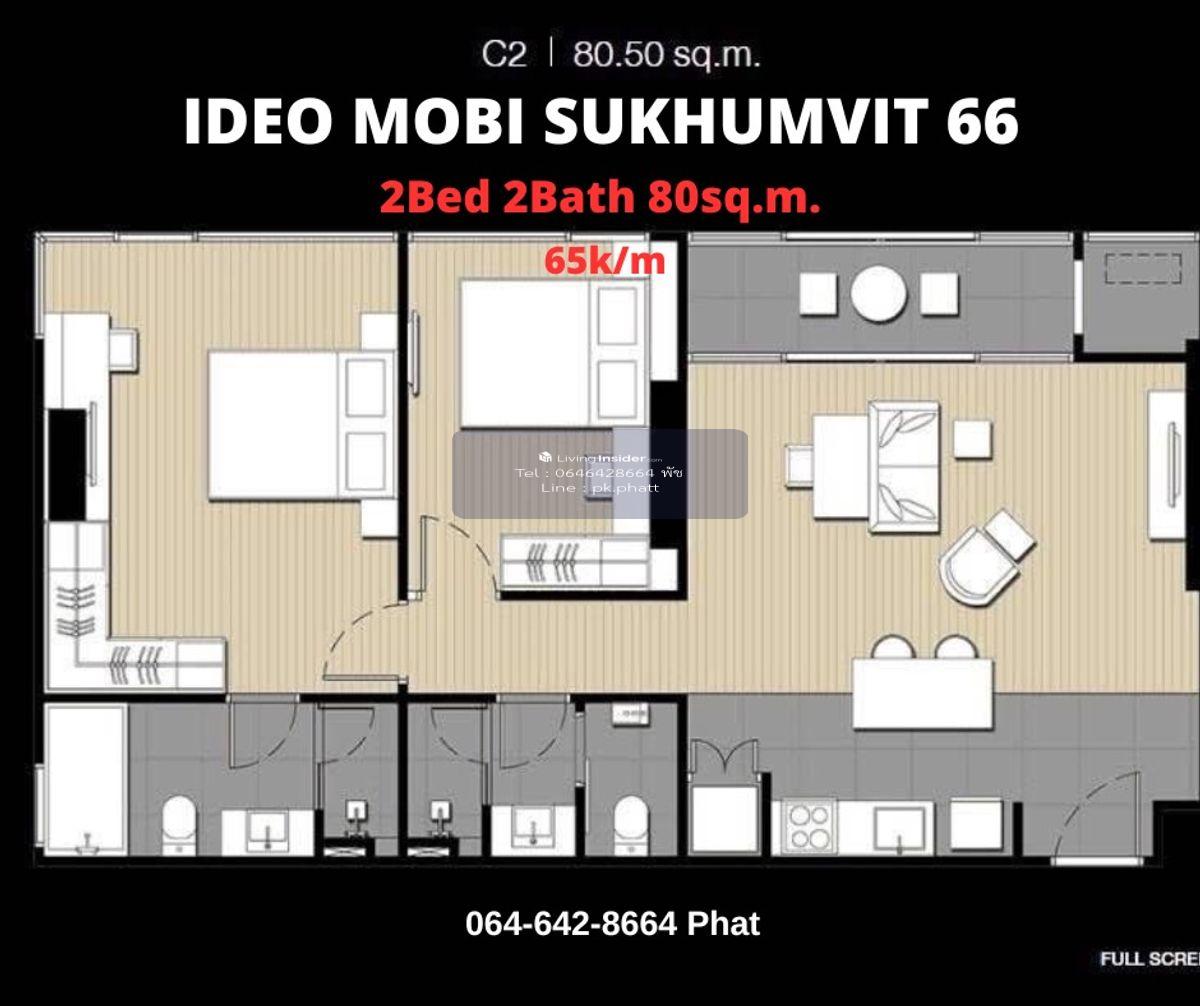 For Rent Ideo Mobi Sukhumvit66 2BED 2BATH 80SQ.M. 65,000/M Contact Contact number (Phat) #Condo near BTS Udomsuk #Sukhumvit Condo #Condo near Bangna #Condo near Suan Luang #Condo near Seacon Square #Condo near Phra Khanong #Condo near Non Nuch #Condo near Mega Bangna #Condo near Digital 101