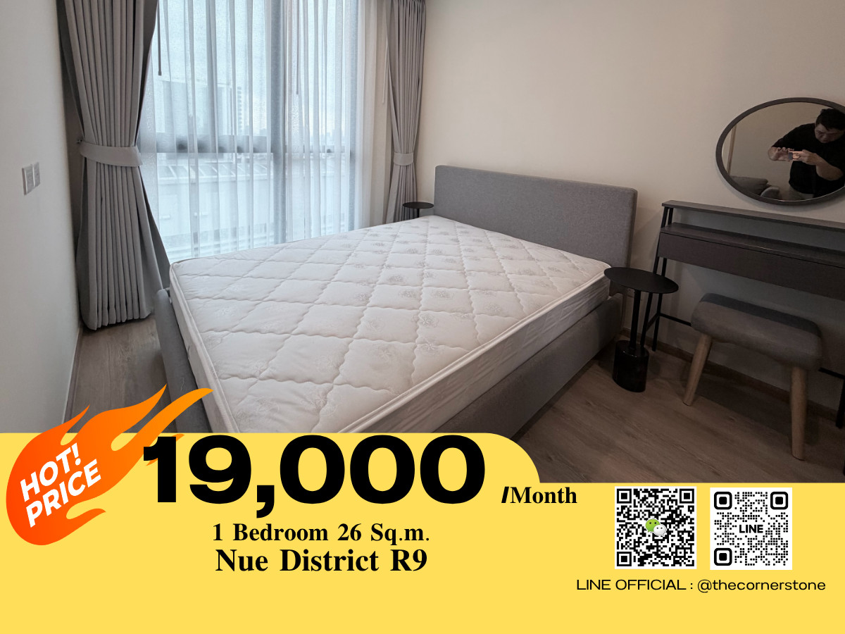 Hot Price ‼️⚜️ NUE District R9 ⚜️ Brand-new condominium next to MRT Rama 9 and Central Rama 9 Ready to move in on 25/11/25 ✅ 🔥🔥 Rental Price: 19,000 THB/month 🔥🔥 1 Bedroom, 1 Bathroom Size: 26 sq.m. Floor: 22 Building N Available to move in on 25 May 2025 Unit No.: 251412 📌 Location: MRT Rama 9, Airport Rail Link Makkasan, Orange Line (MRTA Station), Central Rama 9, Fortune Town, Esplanade Ratchada, The Street Ratchada Interesting please contact: 📞 Contact number (TH-ENG) 📞 Contact number (TH-CHN) Line: @thecornerstone https://lin.ee/nq2shwi 📲 WECHAT: robertchen119
