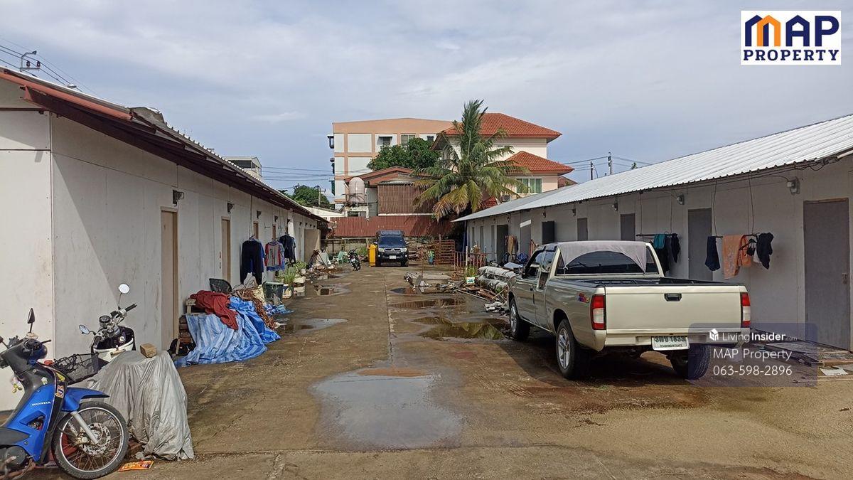 Land for sale with worker housing, fenced around 600 sq. wah. - Beautiful rectangular shape, 90 m wide, 25 m deep. - Water and electricity available, half-plot concrete floor. Orange Urban Planning Area: Densely populated, surrounded by apartments, offices, and houses. Convenient access from both sides: Phahonyothin Road Soi 52 and Theparak Road Soi 23. - 1 km from Saphan Mai BTS Station. - 550 m from North Bangkok University. Interested? Contact: Mr. Chansak Contact number