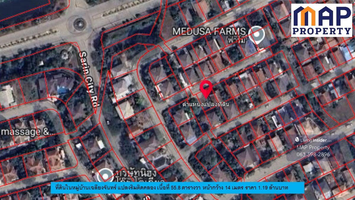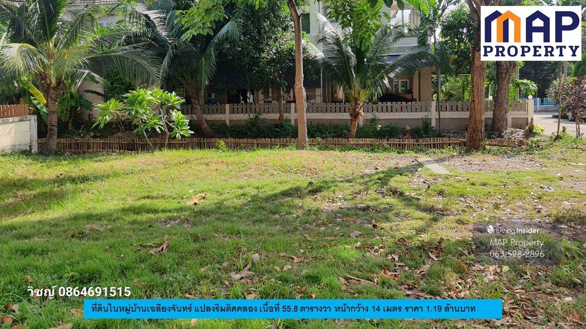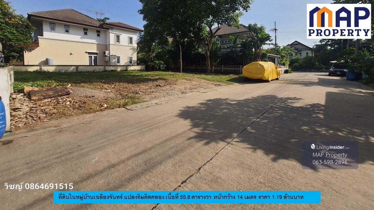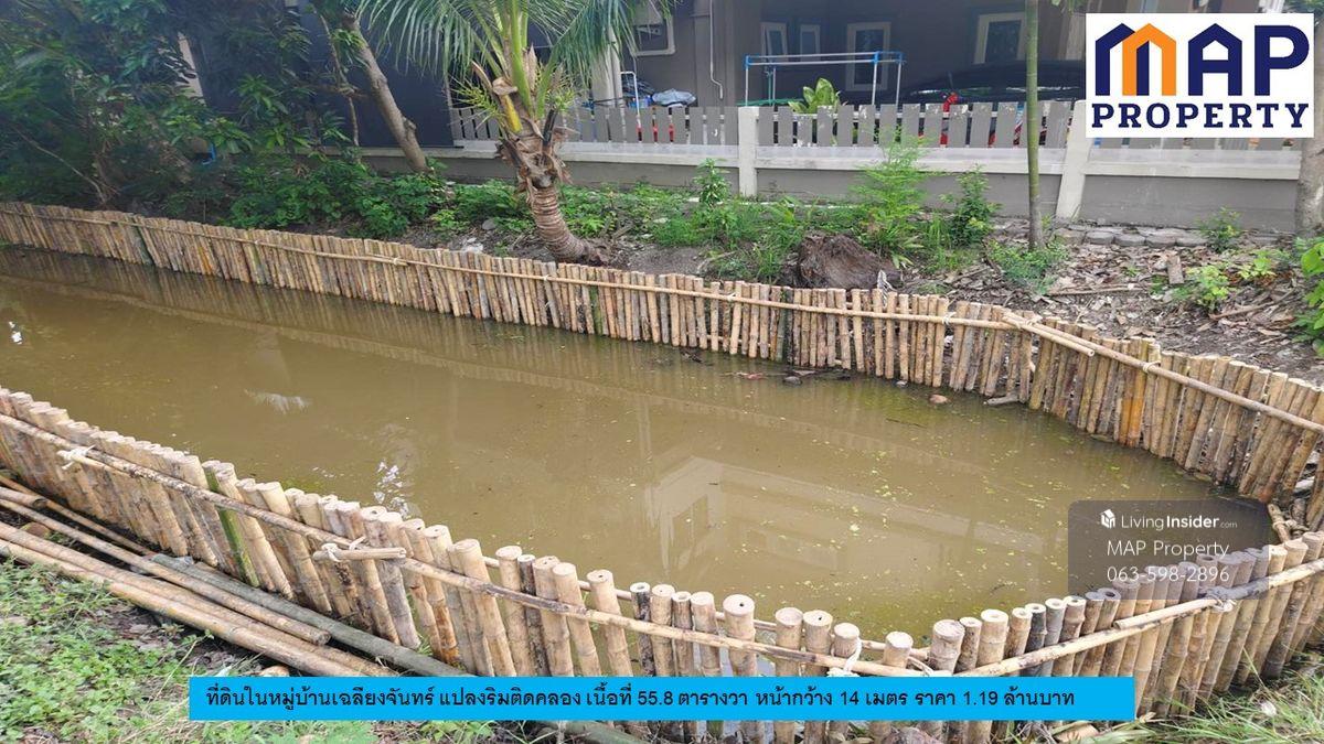Vacant land ready for house construction in Chaliangchan Village, Sarin City Project, Khok Kham Subdistrict, Mueang District, Samut Sakhon Province. - 55.8 square wah (1,000 sq m) plot with a beautiful rectangular shape. The plot's side faces a 16-meter canal. - The front faces a 14-meter-wide project road. - Surrounded by residential homes in a natural setting. - The land has been leveled and raised above the road, ready for immediate house construction. - The village committee manages the common areas. Price: 1.19 million baht. - Transfer fees split 50/50. Contact: Khun Wit Contact number