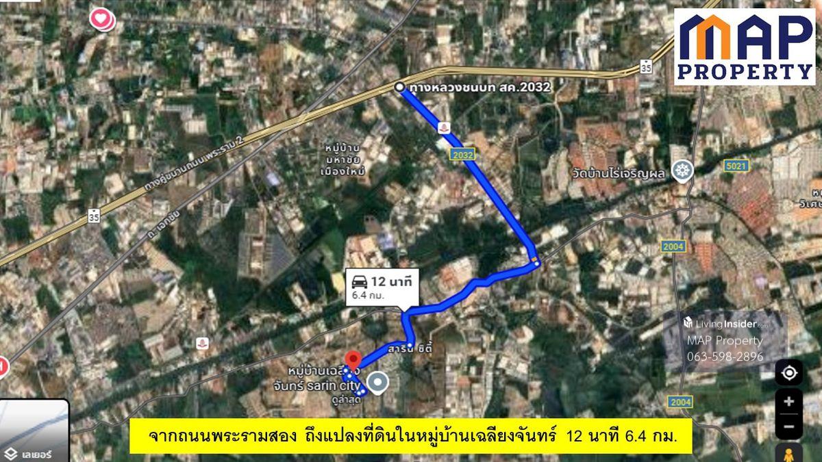 Vacant land ready for house construction in Chaliangchan Village, Sarin City Project, Khok Kham Subdistrict, Mueang District, Samut Sakhon Province. - 55.8 square wah (1,000 sq m) plot with a beautifu