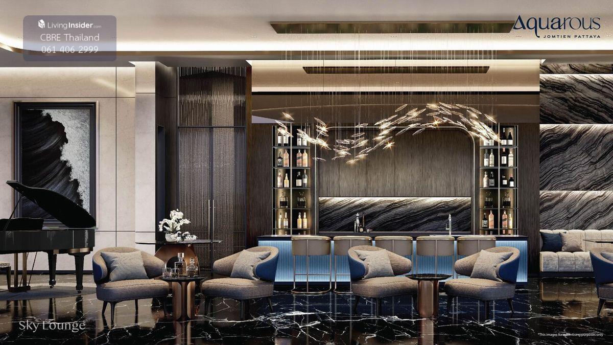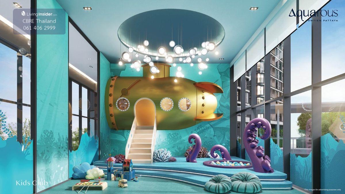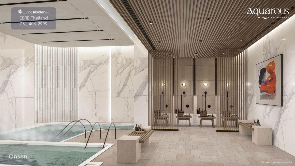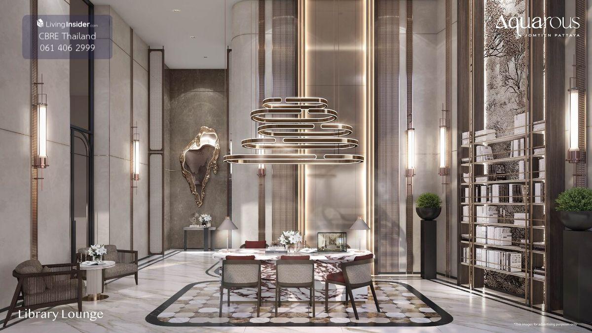 Aquarous Jomtien Pattaya is a high-rise luxury condominium designed with an ocean theme, seamlessly integrating natural beauty with modern living. This development offers residents a tranquil and visually stunning atmosphere, situated near Jomtien Beach and key amenities in Pattaya. It caters to both individuals and families with a variety of unit sizes and extensive facilities. The ocean-inspired design reflects the serene colors of the sea, enriching the everyday lives of residents. The architectural layout is meticulously crafted to maximize sea views from each unit, while interior spaces offer a blend of comfort and modern sophistication. The condominium features a comprehensive range of amenities, including a spacious swimming pool with a dedicated children's zone, a kids' club and numerous family-friendly activities. Residents benefit from 24-hour security, concierge services, key card access and on-site parking.