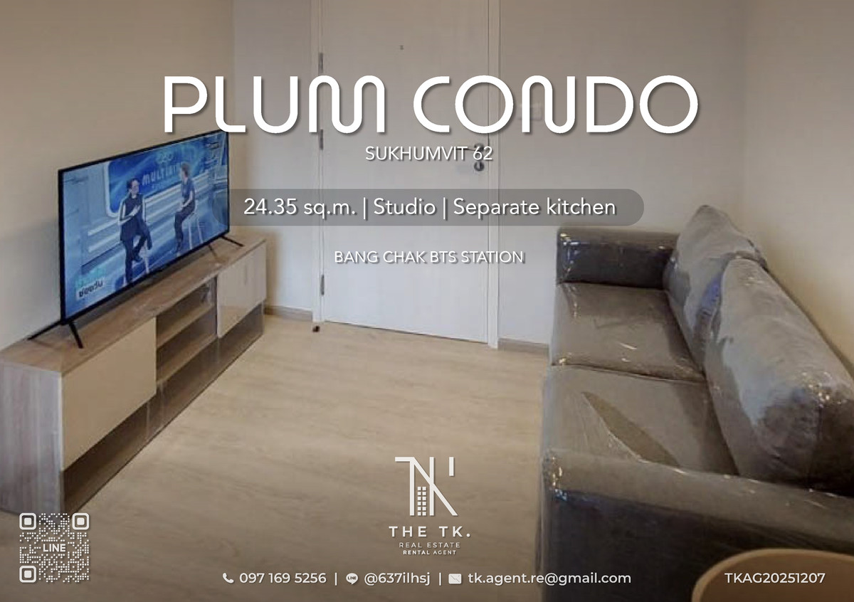 [THE TK.] ให้เช่าคอนโด : ใกล้ BTS บางจาก จ่าย 27,000 ก่อนเข้าอยู่ "Plum Condo Sukhumvit 62" | ติดต่อคุณทีเค Line ID @637ilhsj Property Code…: TKAG20251207 Project……………..: Plum Condo Sukhumvi