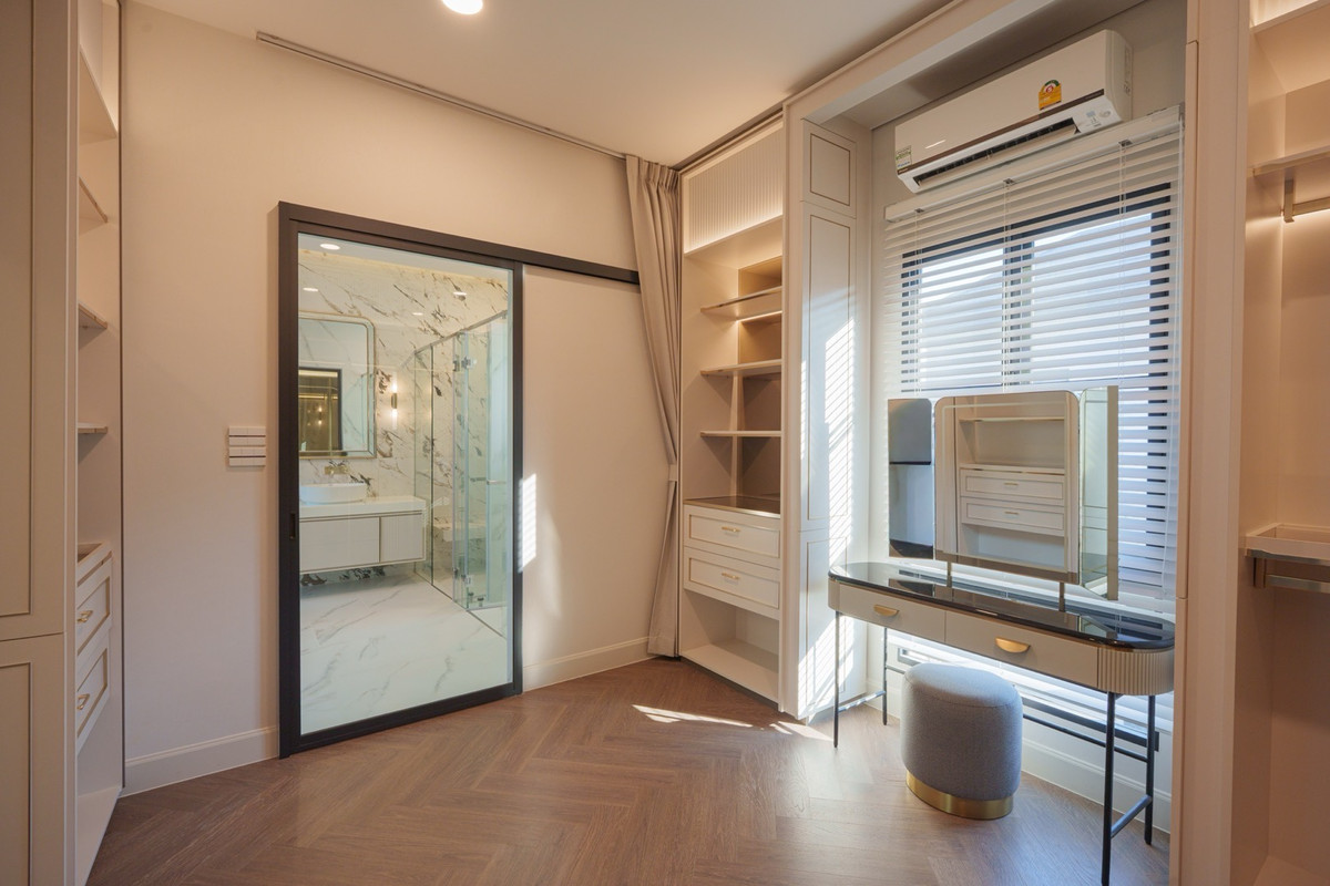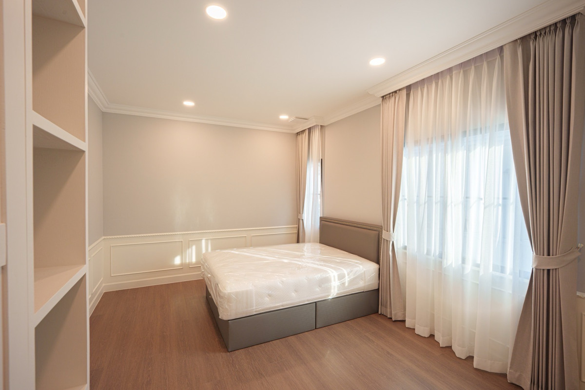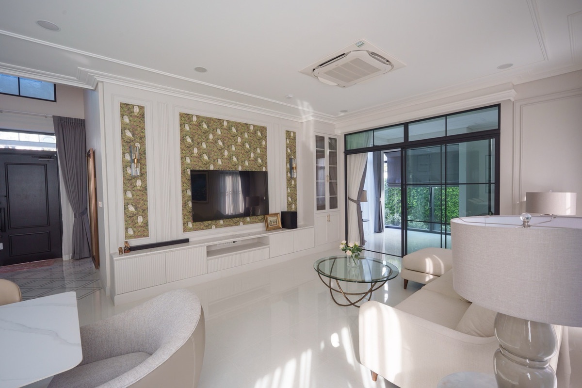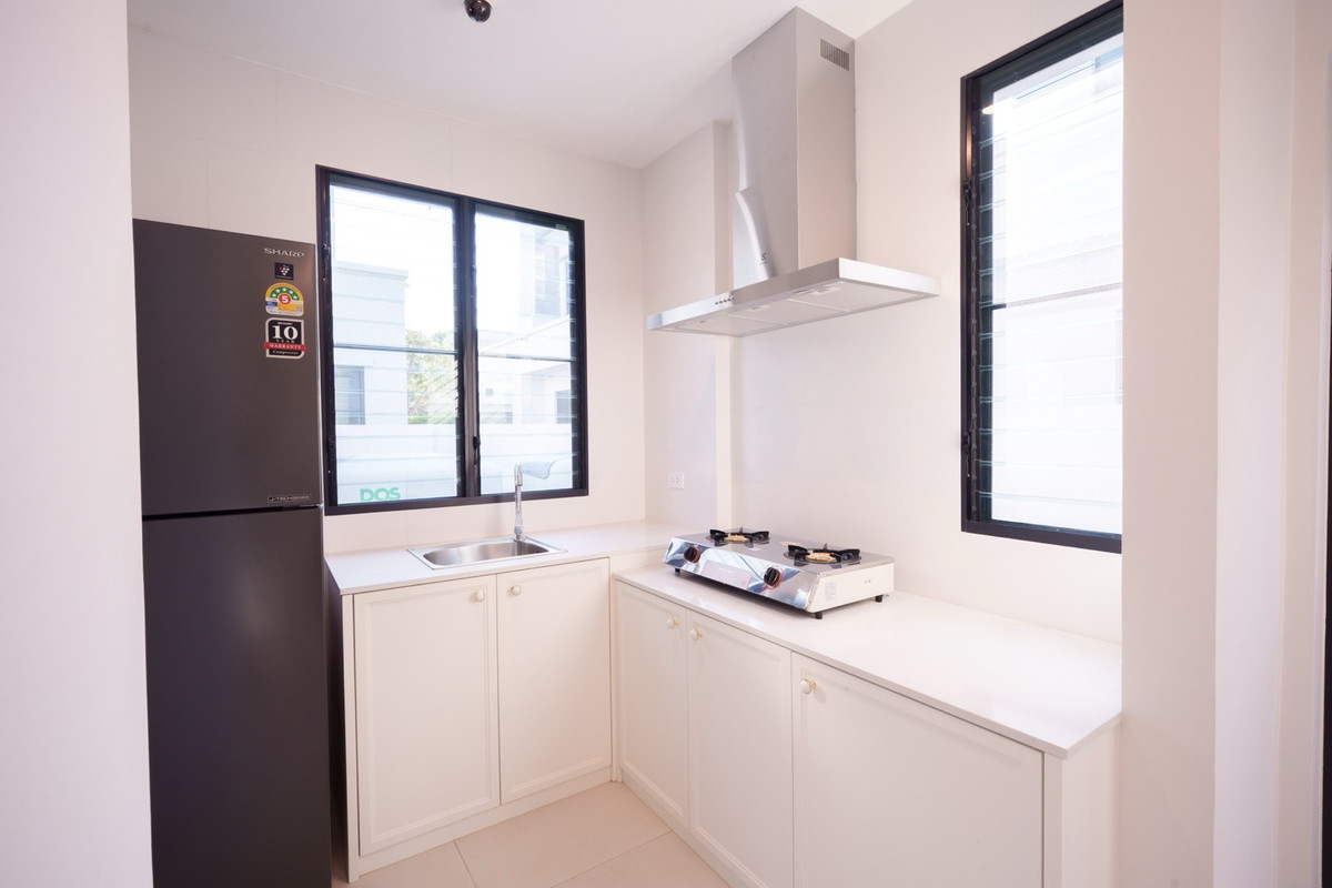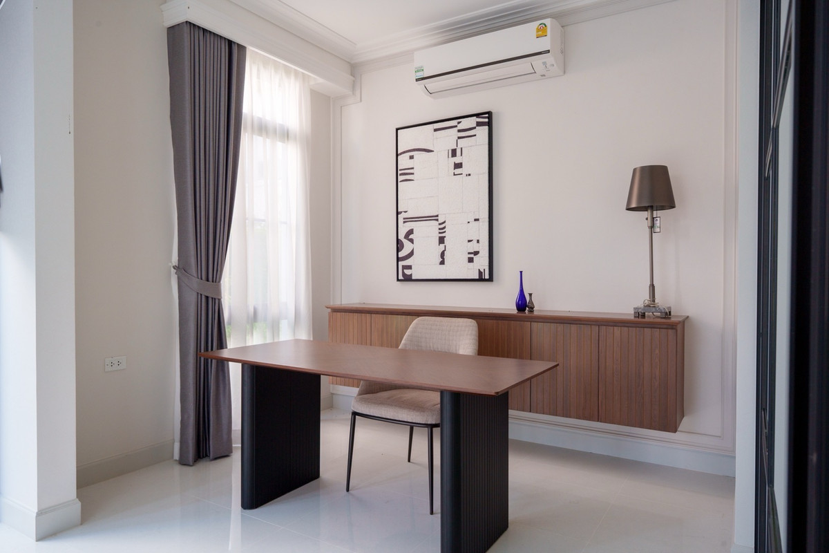 💰 Rent a single house, Nantawan Project, Km 15, 4 bedrooms, 5 bathrooms 🌳 size 140 sq.m., 377 sqm. 4 bedrooms, 5 bathrooms 3 parking spaces 2 kitchens (Thai kitchens) Large and small living room The house is decorated fullish - furniture and electrical appliances. Ready to move in. Details: - Close to nature from every angle With a large garden area around the house With a terrace for relaxing in the garden- resting corner, connecting to the dining area and the kitchen perfectly - Private working corner Open to receive the outside garden- Bedroom on the ground floor With a Walk-in Closet and the bathroom opens for natural views - Thai kitchen area Install built -in furniture, ready to use all functions In proportion with a large glass wall - Laundry area with furniture storage, laundry equipment- Housewife room with an ensuite bathroom Divided into proportion Connect to the kitchen And washing area -4 parking spaces can be supported For more information and make an appointment to see the room Contact number or ID Line: https://line.me/ti/p/mgqeszx5_T