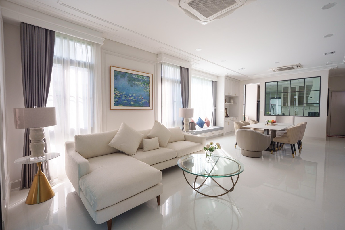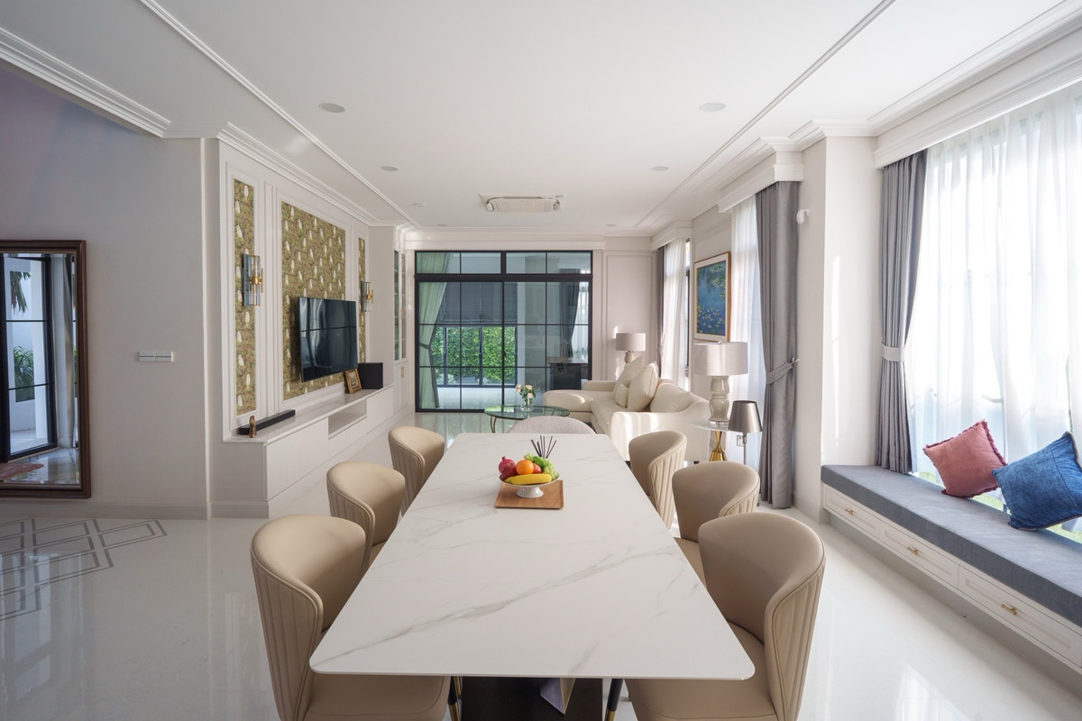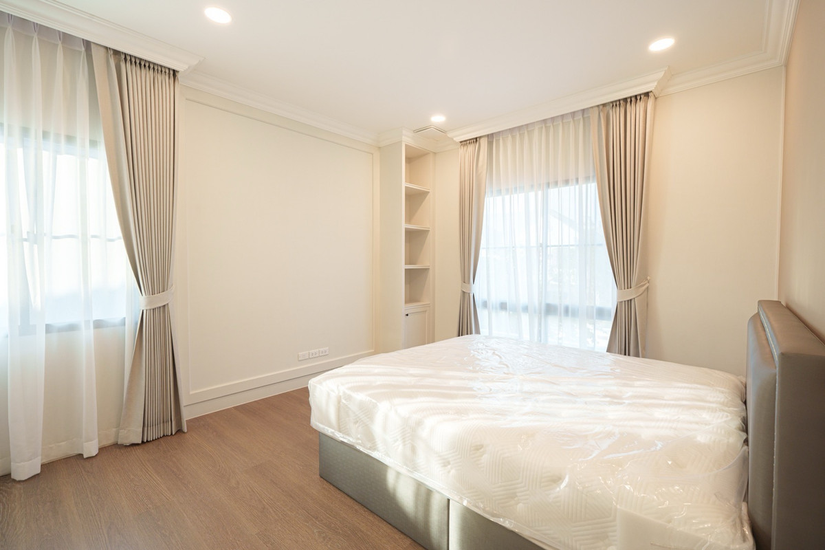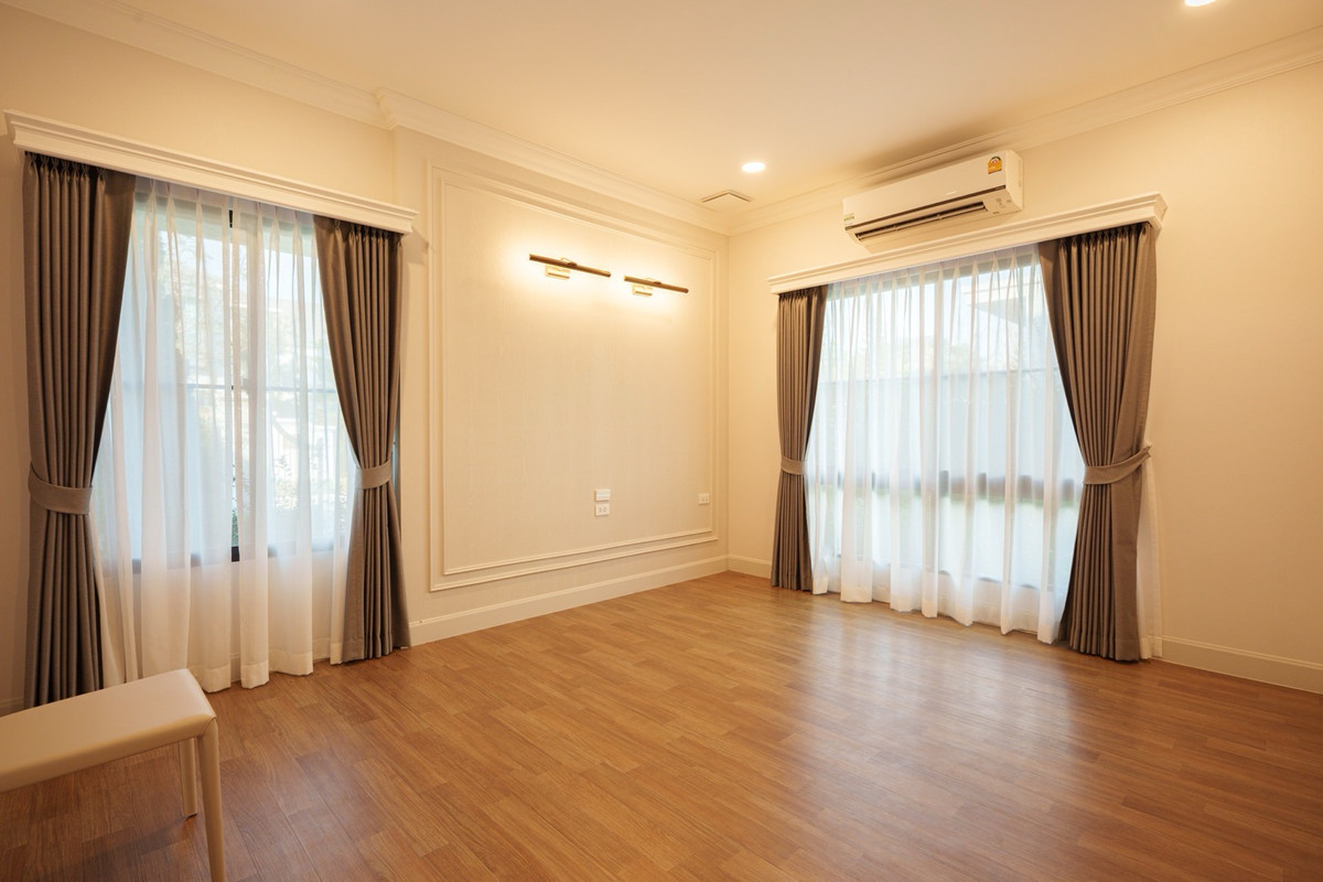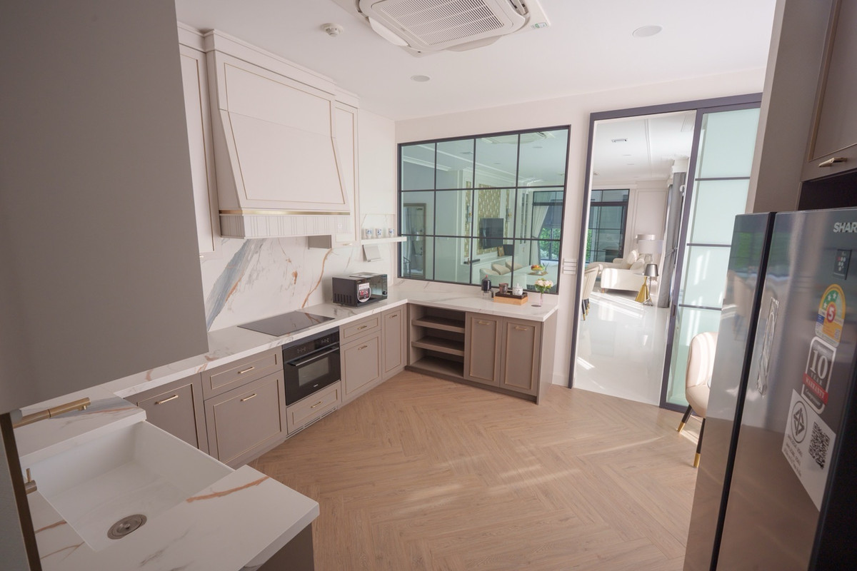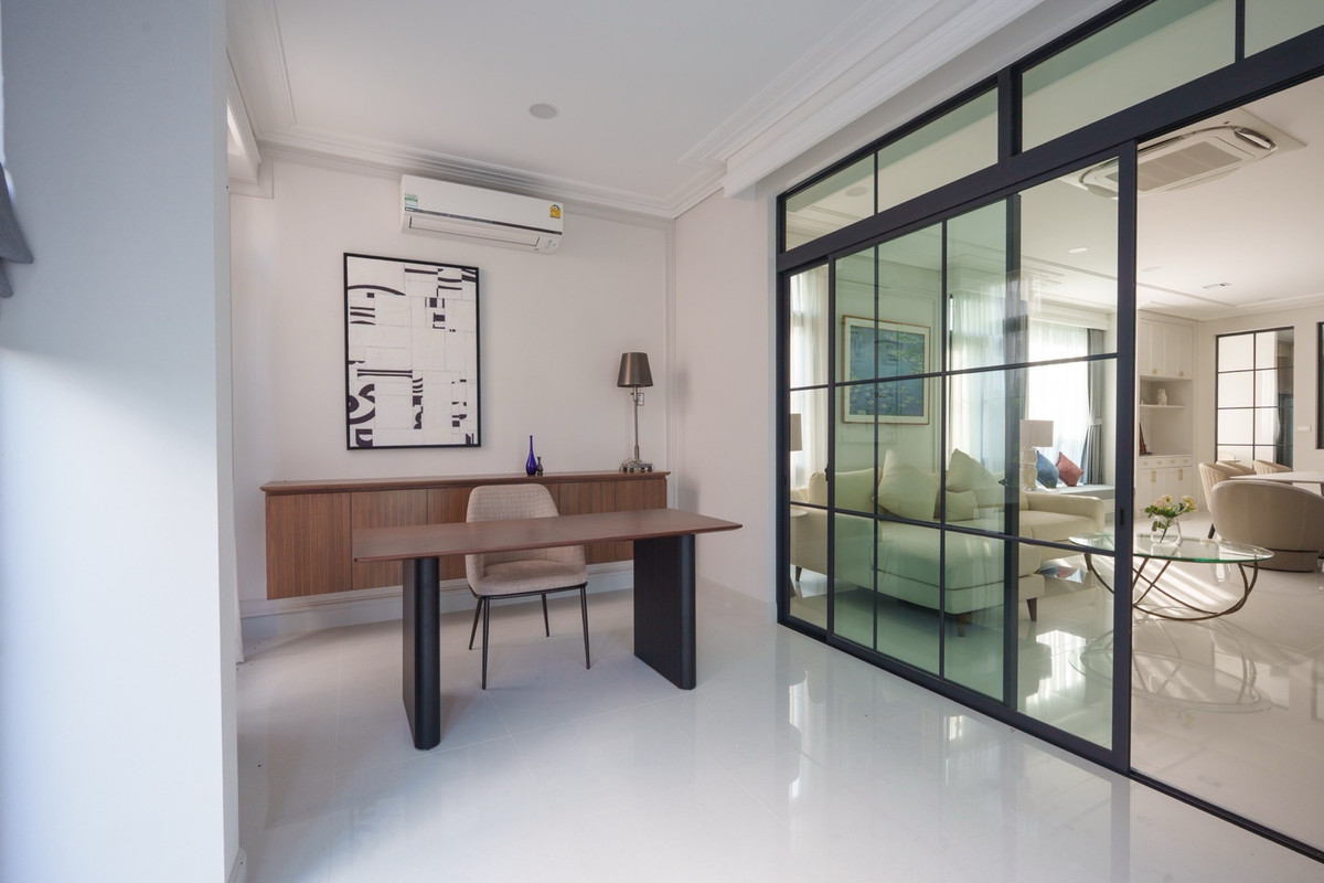 💰 Rent a single house, Nantawan Project, Km 15, 4 bedrooms, 5 bathrooms 🌳 size 140 sq.m., 377 sqm. 4 bedrooms, 5 bathrooms 3 parking spaces 2 kitchens (Thai kitchens) Large and small living room The house is decorated fullish - furniture and electrical appliances. Ready to move in. Details: - Close to nature from every angle With a large garden area around the house With a terrace for relaxing in the garden- resting corner, connecting to the dining area and the kitchen perfectly - Private working corner Open to receive the outside garden- Bedroom on the ground floor With a Walk-in Closet and the bathroom opens for natural views - Thai kitchen area Install built -in furniture, ready to use all functions In proportion with a large glass wall - Laundry area with furniture storage, laundry equipment- Housewife room with an ensuite bathroom Divided into proportion Connect to the kitchen And washing area -4 parking spaces can be supported For more information and make an appointment to see the room Contact number or ID Line: https://line.me/ti/p/mgqeszx5_T