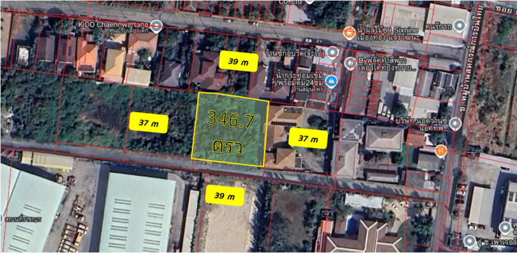 Land for sale, Thai Airways Cooperative Village, 346.7 sq m, near MRT Muang Thong Thani, near IMPACT Muang Thong Thani, entering the alley 350 m. :: Highlights :: - Near the MRT Pink Line, Muang Thong Thani Station. - Rectangular plot, easy to use, suitable for houses, offices, offices. - Walk from Chaengwattana Road for a moment, only 350 m. - Near many amenities Central Chaengwattana, IMPACT Muang Thong Thani, Makro, Lotus and Big C Chaengwattana branch, very convenient, easy to live. - Near the expressway entrance and exit point At Muang Thong Thani and Toway, Vibhavadi Road Entering the city is very convenient. - Land width 39 m., depth 37 m., rectangular plot, easy to use  - The land frontage is 39 meters wide, making the house look imposing and dignified, suitable for building a luxury home. It's great as an office. :: Details :: - Size 346.7 sq m. - City planning, orange, Year 6, FAR 5:1, able to build large buildings. - The road in front of the land is 6 meters, can build a building 18 meters high. * Development potential according to the city plan is estimated, but civil engineering must be inquired before actual construction. :: Nearby places :: - Thai Watsadu Chaengwattana : 2 km - Central Chaengwattana: 3.4 km - Big C Extra Chaengwattana 2 : 4.9 km - Major Hollywood Pak Kret: 6.2 km Coordinates: http://maps.google.com/maps?q=13.899398,100.549744 Price: 24,269,000 baht (Price 70,000 baht / square wa) If interested, contact: Nok Contact number Line: nicky.thailand Asset X Property Company Limited Asset