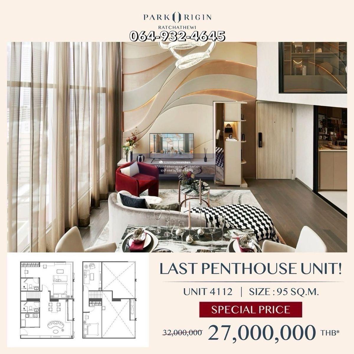 Last Penthouse Unit 3BEDROOOMS 95SQ.M Park Origin Ratchathewi for Exclusive Deal 064-932-4645 Ken https://line.me/ti/p/Q9Perbnxv
