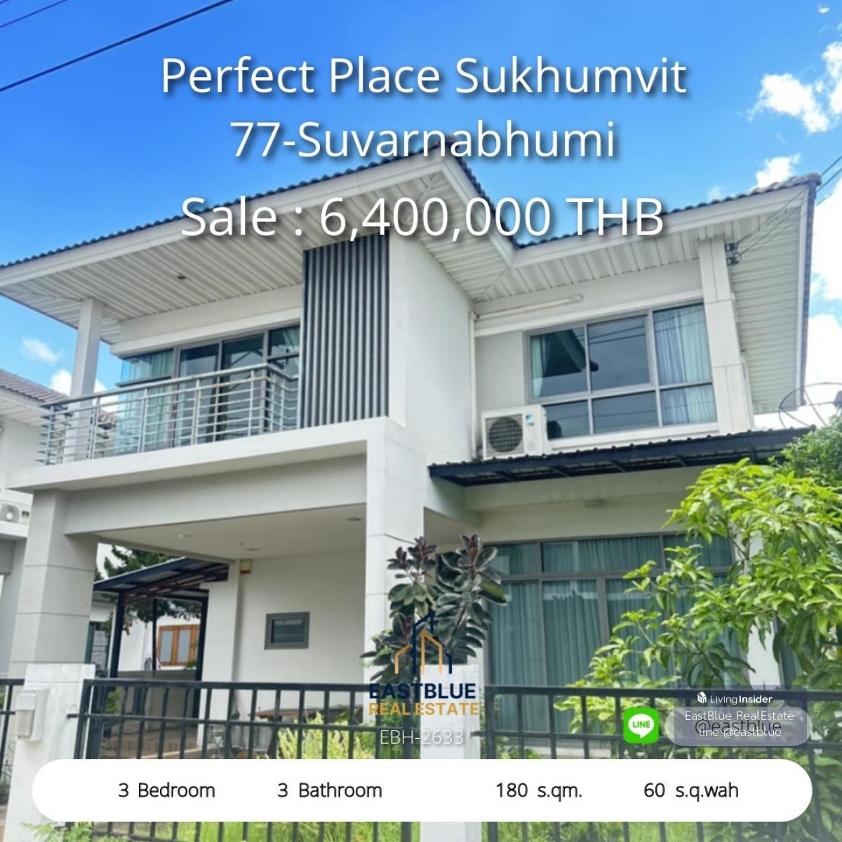 Perfect Place Village Onnut-Suvarnabhumi (Sukhumvit 77) 2-storey detached house, 60 sq.w., 180 sqm. *3 bedrooms *3 bathrooms *Parking 2 cars *The built-in kitchen Plus, 1 set of TV set with TV , 3 bedrooms Body -18,500 BTU 1 -12,000 BTU 2 -Near Suvarnabhumi Airport, only 5 minutes -Attached to Robinson Ladkrabang -Near HomePro, Macro, Psychy Price 6.4 million Project: Perfect Place Sukhumvit 77-suvarnabhumi (? EBH-2633 3 Bed 3 Baht House Area: 180 SQM Land Area: 60 SQ.WAH Selling Price: 6,400,000 Thb Contact, Appointment for Viewing. Call: Contact number WhatsApp: Contact number See more than 50,000 other assets, Explore Over 50,000 list on our website: https://ww.eastblueeth.com Co-Agent❗️❗️.