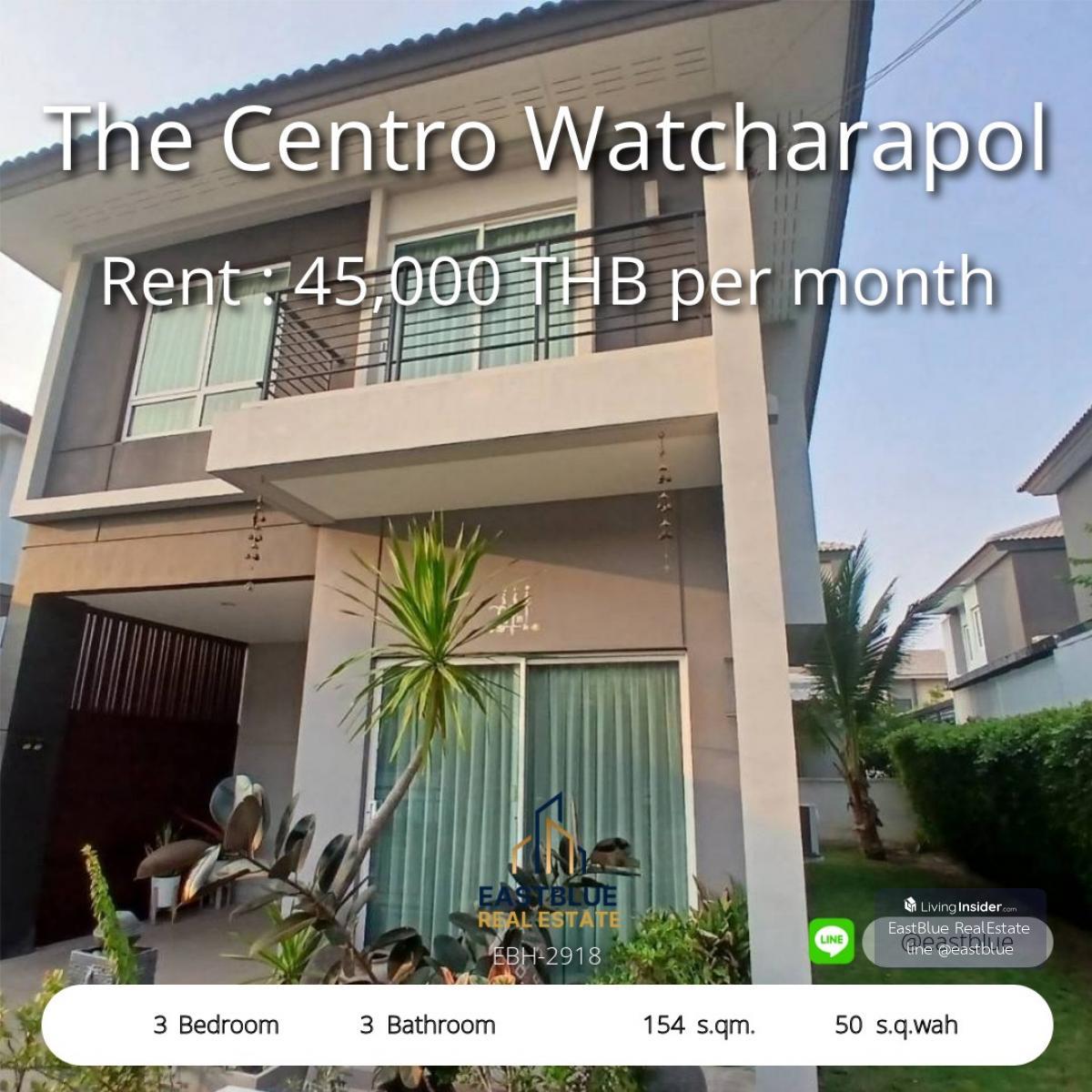 Project: The Centro Watcharapol ID: EBH-2918 3 Bed 3 Baht House Area: 154 sq m Land Area: 50 sq m Rental Price: 45,000 THB per month Selling Price: 5,650,000 THB Contact us, Appointment for viewing. Call: Contact number WhatsApp: Contact number - Eastblue is a team of professional real estate agents trusted by our clients with sales worth billions of baht. With a team of expert real estate consultants for buying, selling, and investing. View over 50,000 properties, explore over 50,000 listings on our website: https://www.eastblueth.com ❗️❗️Not accepting co-agents❗️❗️ . The Centro Watcharapol, single-family home for rent • 3 bedrooms, 3 bathrooms, parking for 1-2 cars • 154 sq m of living space, 50 sq wah of land House details • 1 living room • Built-in kitchen, ready to use Project Amenities: • Clubhouse • Swimming pool • Fitness center • 24-hour security Nearby Places: • Fashion Island (4 km) • Crystal Park (3.5 km) • Central Ramintra (7 km) • Synphaet Hospital (5 km) • Sarasas Sai Mai School (6 km) • Expressway/Motorway (8 km) • Don Mueang Airport (12 km) Rental Price: 45,000 baht/month Minimum 1-year contract, 2-month deposit, 1-month advance payment #TheCentroWatcharapol #HouseForRent #WatcharapolHouse #BangkokHouseForRent