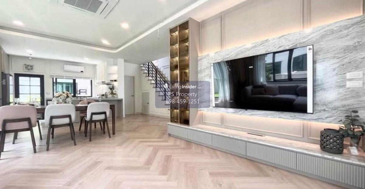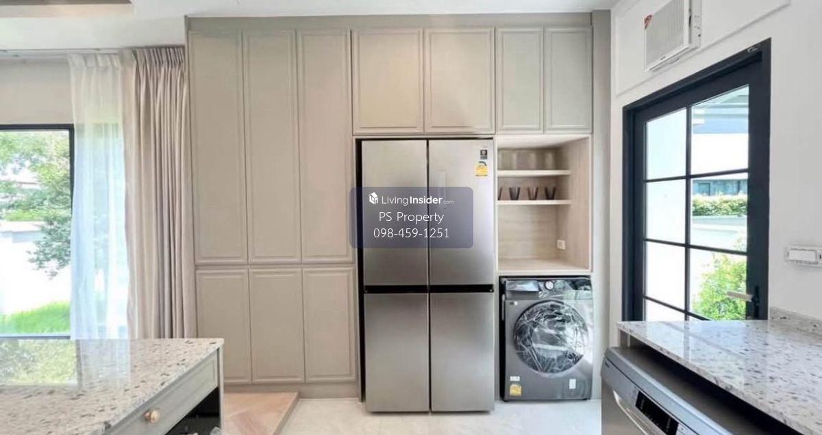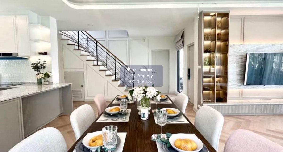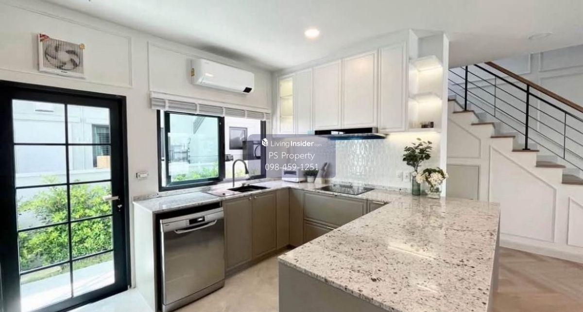 Price: 170,000 baht / month Usable area: 280 sq.m. Area: 25 sq.w. Floor: 2 4 bedrooms / 5 bathrooms / 1 living room / 2 parking spaces Amenities: CCTV, key card Access, fitness center, swimming pool, 24/7 security guard, co-working area, common area. Furniture included: TV, microwave, sofa, refrigerator, bed, air conditioner, water heater, Smoke Dispenser, shelf, TV cabinet, wardrobe, center table. House for rent! convenient transportation, near BTS, near the expressway, fully furnished Ready for viewing. Interested please contact: 📞Call center: Contact number 📱Hotline: Contact number 📲Whatsapp: Contact number 🖱️Line: @psproperty https://lin.ee/d8bpOBs Website: https://www.ps-property.co.th/