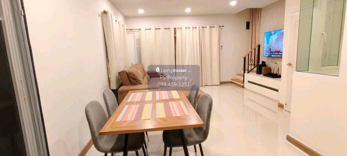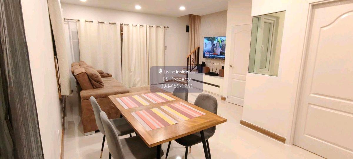 Price: 28,000 baht/month Usable area: 145 sq m Land: 30 sq wah Number of floors: 2 3 bedrooms / 3 bathrooms / 1 living room / 2 parking spaces Facilities: 24-hour security, CCTV, swimming pool, fitness center, garden, common area Furniture: TV, microwave, sofa, refrigerator, bed, air conditioner, water heater, range hood, shelves, TV cabinet, wardrobe, coffee table Conveniently located near the BTS and expressway. Fully furnished, ready to move in! For more information, please contact: 📞Call Center: Contact number 📱Hotline: Contact number 📲Whatsapp: Contact number 🖱️Line: @psproperty https://lin.ee/d8bpOBs Website: https://www.ps-property.co.th/