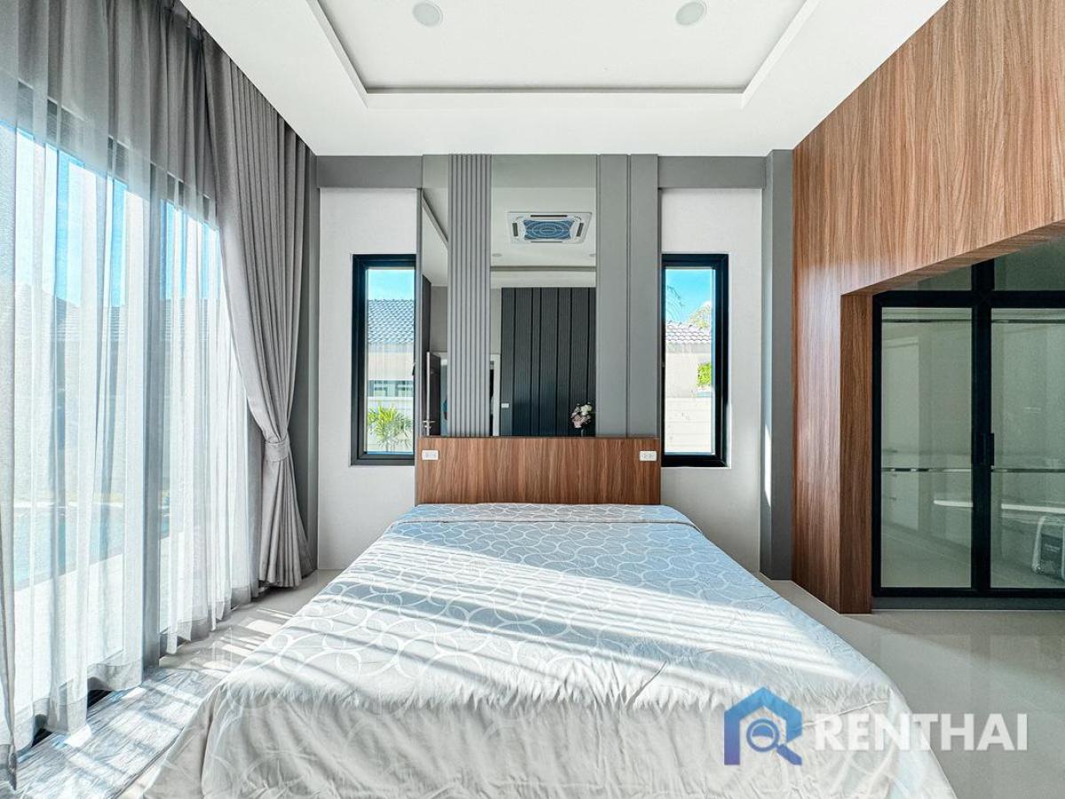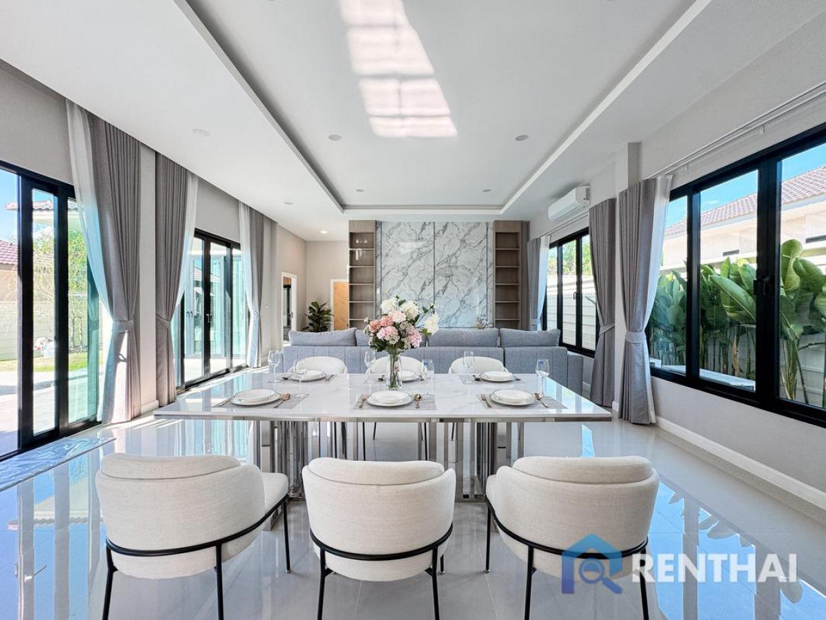 Listing code: #RT03550 Villa Type A with private swimming pool in Pattaya, set on a spacious 135 sq.w. land plot with 540 sq.m. of living space. This modern villa offers 3 bedrooms and 4 bathrooms, designed with a contemporary layout that combines comfort and functionality. The highlight is its expansive pool view and serene atmosphere, making it ideal for relaxation, entertaining guests, or investment purposes. With its stylish design and generous living area, this villa perfectly suits those seeking a balance of luxury and convenience in one of Pattaya’s most desirable locations. Starting price: 9,050,000 baht - 3 bedrooms, 4 bathrooms - Land size 108 sq.w. - Usable area 540 sq.m. - 1 floor - Pool view - Thai quota - Without furniture Facilities: - Pet friendly - Private pool - Pool Access - Private Garden - Garden Access - European kitchen - Bathtub Location: Huai Yai, Pattaya For more details feel free to contact us by Tel: Contact number WhatsApp: Contact number Line ID: minehappiness https://line.me/ti/p/4FWcxgo_eM (click the link to add line) ……………………………………………………………………… Website: https://renthai.com Facebook Page: https://www.facebook.com/renthai.pattaya Line Official: @renthai Email: Contact email Renthai - your reliable assistant in buying, selling and investing in real estate in Pattaya.