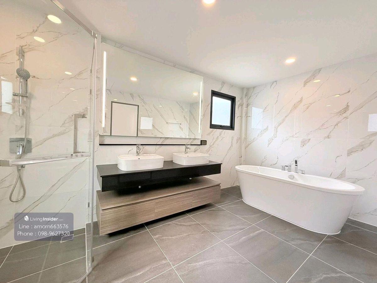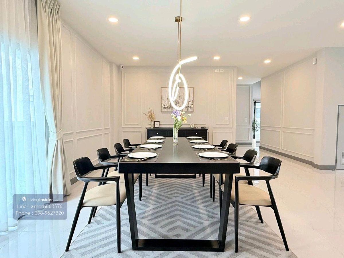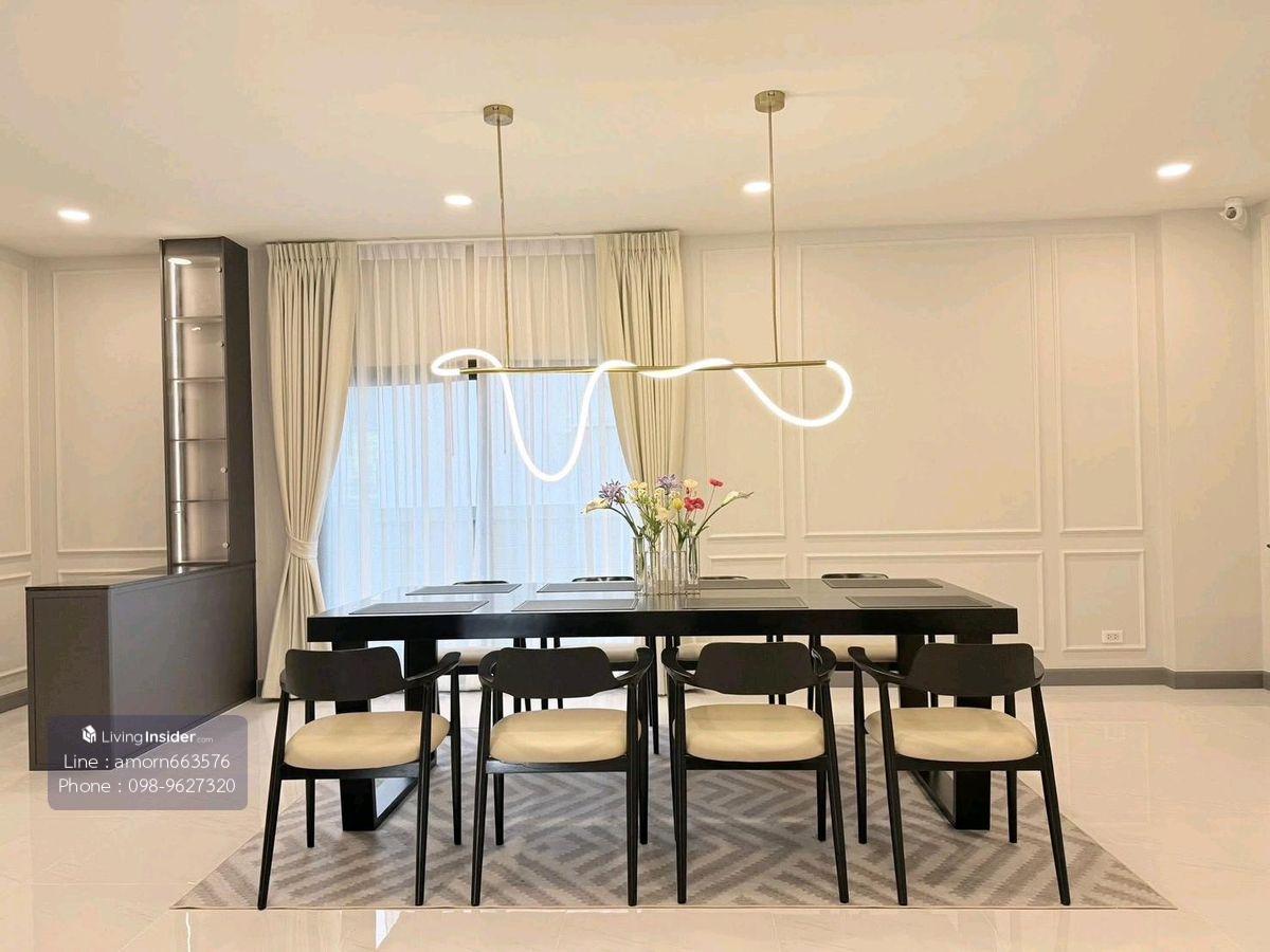 📌 For rent, The City Bangna, luxury detached house, new project (Near Mega Bangna and leading international schools) 🔥 Price 189,000 baht/month 🔥 🏠✨ Emerald 🧭 The house facing the south No wires in front of the house 🚶🏻♂️➡️ near the Walkway to Club House Very convenient. 📍 Usable space 351 sqm. House area 76 sq. 🛏️ 5 bedrooms include housewife rooms 🛁 6 bathrooms 🖼️ 2 living rooms 🍱 1 dining room 1 Buddha room 🏎️ 3 Parking Decorated with ⚡️ Electrical appliances • 7 air conditioners • TV 65 inches • Water heater 3 • Water heater • Washing machine • Refrigerator • Embedded gas stove • Microwave • Electric gate • Home Automation (2 months in advance 1 month Minimum contract 1 year) ☎️ Contact ✔️ Line id: amorn663576 ✔️ WhatsApp: Contact number ✔️ Mobile: Contact number ✅️ Make an appointment to watch the house every day 🐬