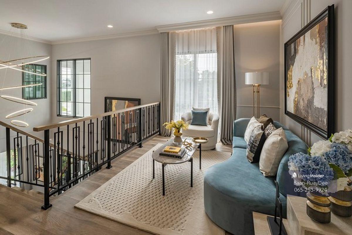 Contact: Khun Nok Line Add: @ggp824 Tel: Contact number Project Owner: Sansiri Public Company Limited Project Area: 45 rai The entire project consists of 170 units. Type: Single-family home Area: 255 sq.m. Land: 73.60 sq.w. 4 bedrooms, 4 bathrooms Price: 19.99 million baht Details: Code: H6837 - Area: 255 sq.m. - Land: 73.60 sq.w. - 4 bedrooms - 4 bathrooms - 2 living rooms - 3 parking spaces - 1 living room - 1 kitchen - 1 Thai kitchen - 1 maid's room - Food preparation area - Dining area - Upstairs relaxation area - Downstairs relaxation area - Storage room under the stairs - Garden area - Clubhouse - Lobby - Common garden - 24-hour security - Fitness center - Relaxation area - CCTV cameras - Developmental area - Clubhouse - Saltwater swimming pool - Automatic Entry/Exit System - Playground - Roof Ventilation - Green Glass - Fully Precast - Electric Appliances - EV Charger - Solar Panel - UV Shield Paint - Fresh O