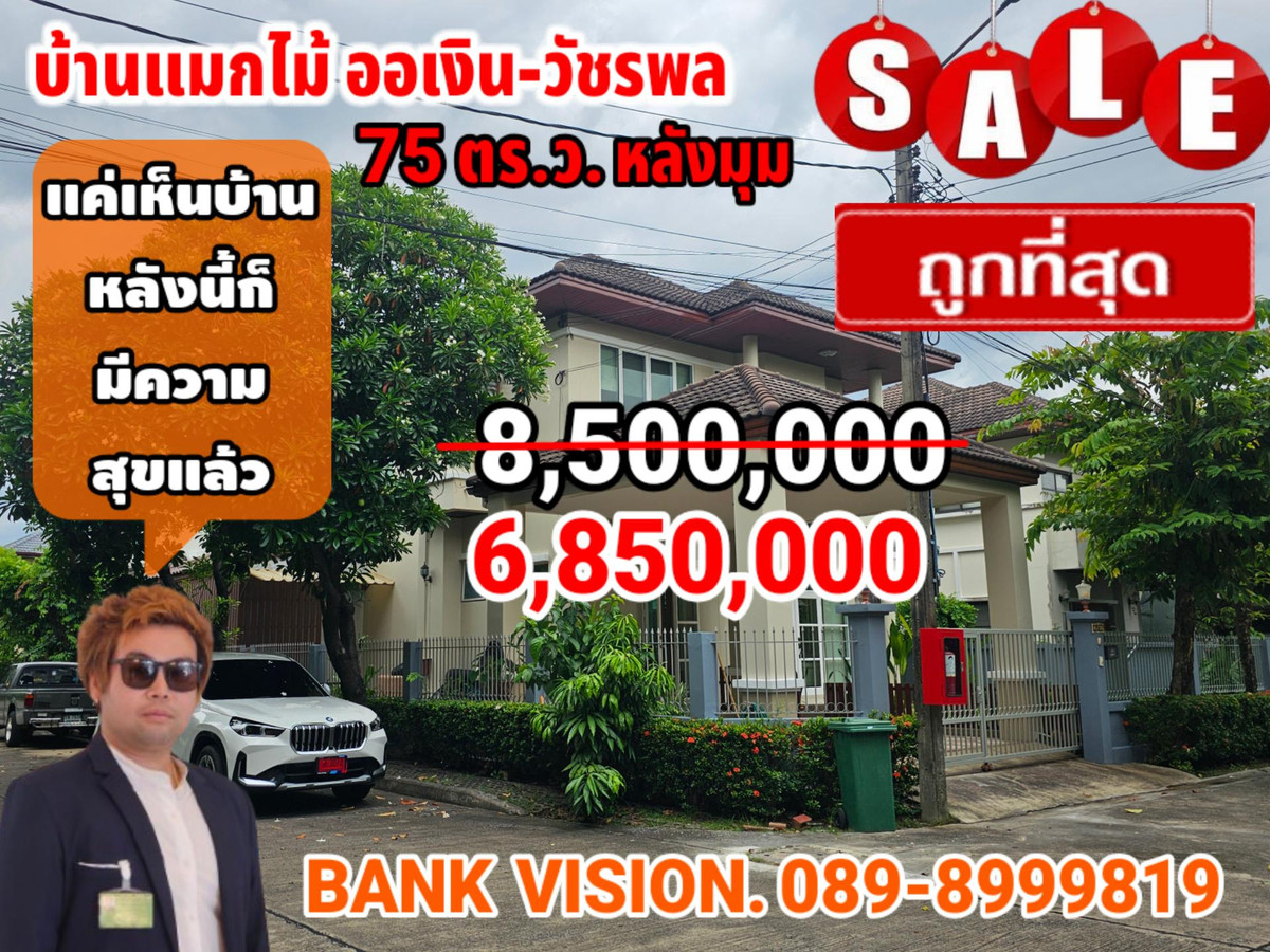 Detached house 🏠 Size 75 sq.w., back corner 📍 Plus, the whole furniture 3 bedrooms 3 bathrooms 1 kitchen 1 large hall 1 Dining zone The lawn Add kitchen-laundry room beside the house (right side) Add the zone to play next to the house (left) 🚘 Parking 4 cars Parking in 2 cars Park outside 2 cars 🚩 Near Big C to Sukhaphiban 5 Rattanakosin School, Sompoch Bang Khen Chalong Rat Expressway BANK VISION Contact number ID Line: Bank-NOVEL