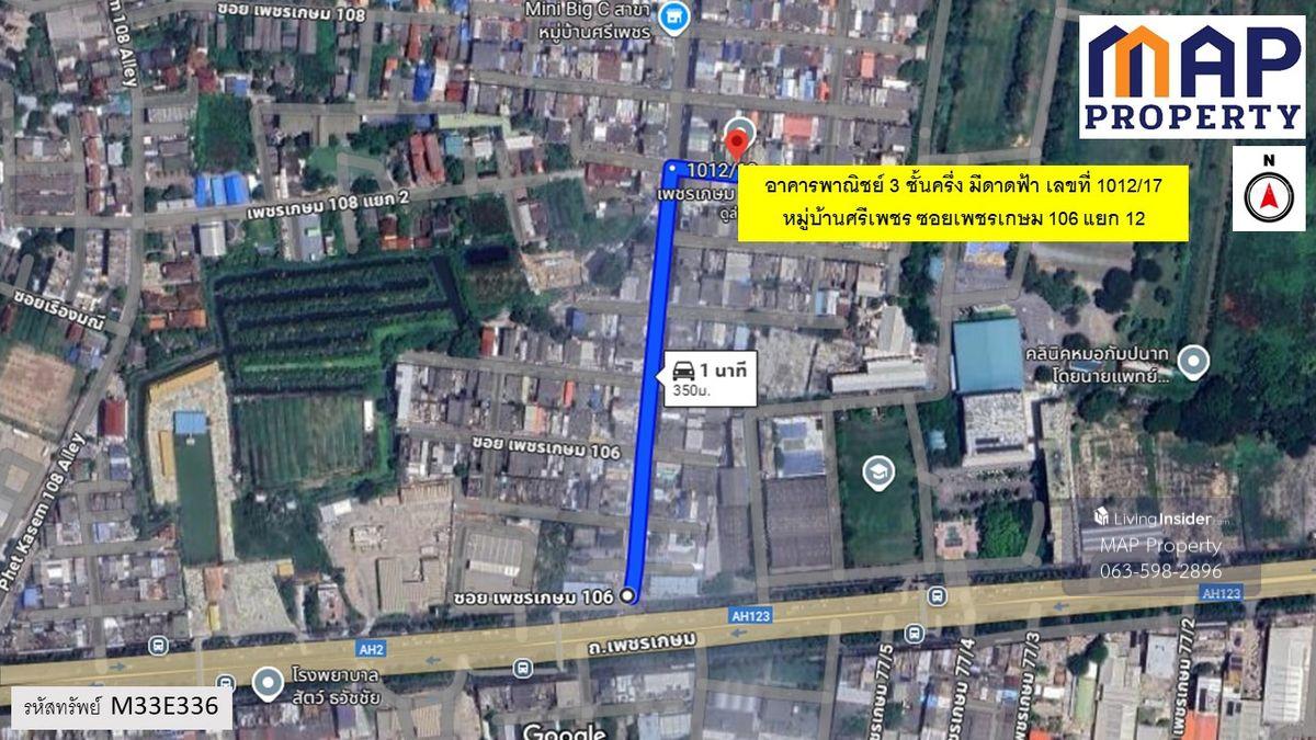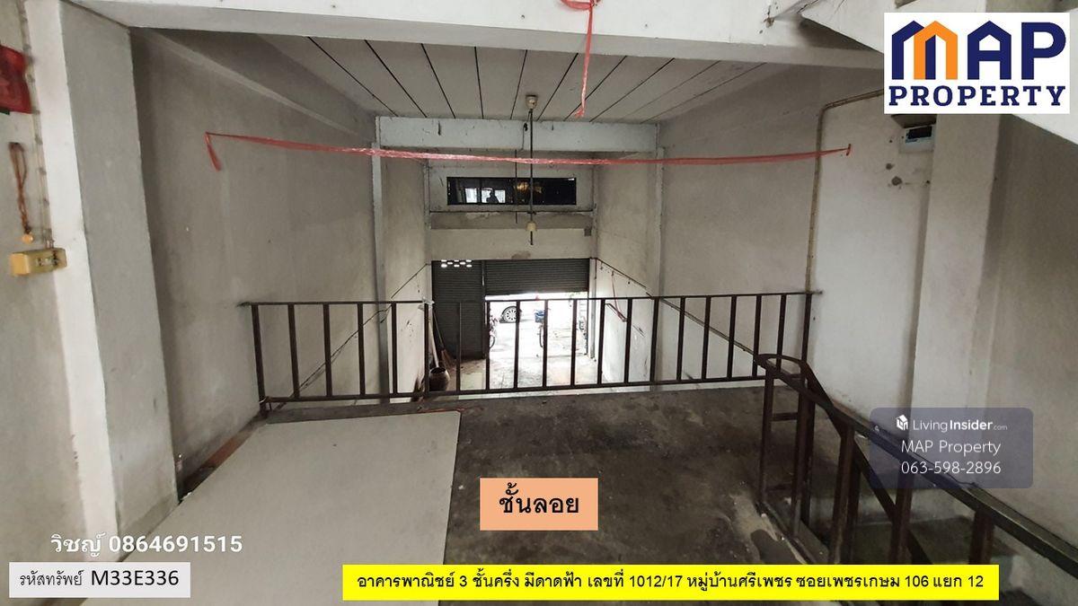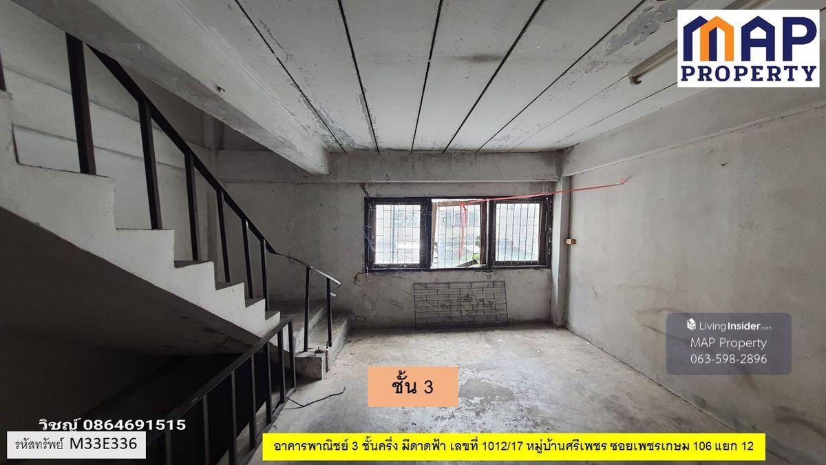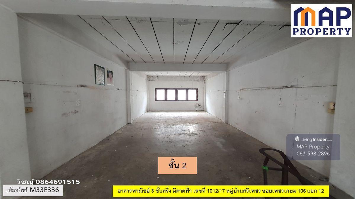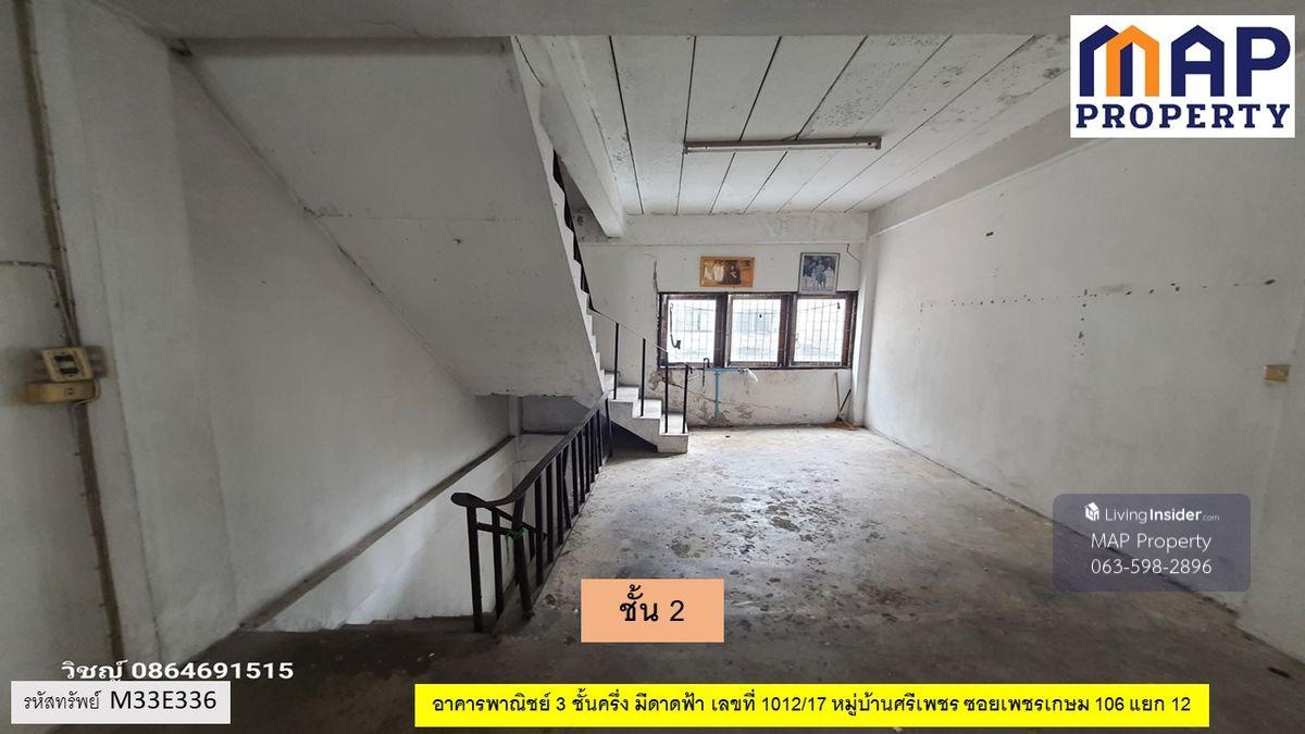 - 3-story commercial building for sale with mezzanine and rooftop. - Includes 20 square wah (1,000 sq m) of land. - Located in the Sri Petch Village project, Soi Petchkasem 106, Intersection 12, Tha Si Charoen District, Bangkok. - This is an existing building with no alterations, making it easy to expand as desired. - Transfer fees and stamp duty are split equally. - Contact Wich: 086.469.1515