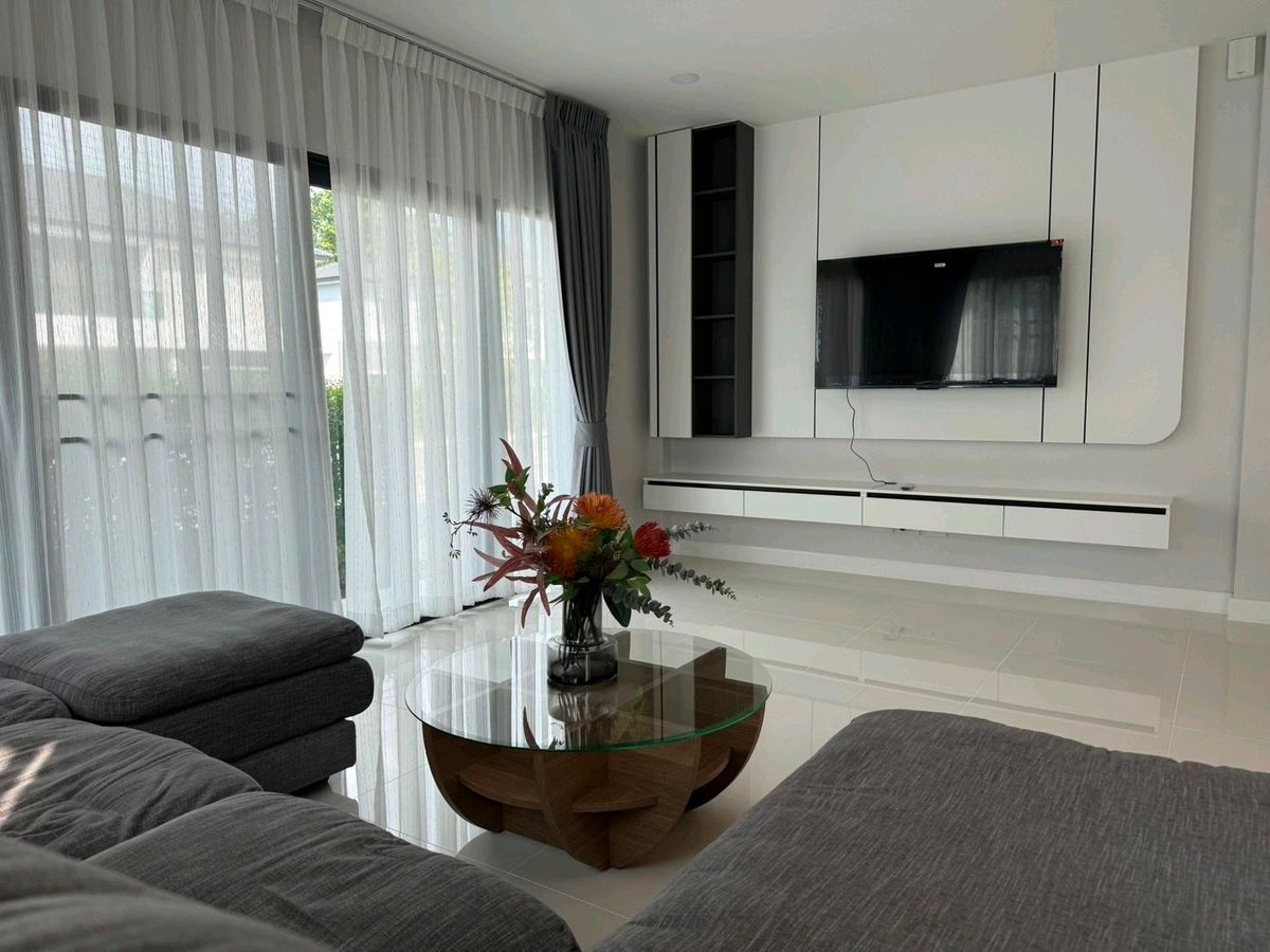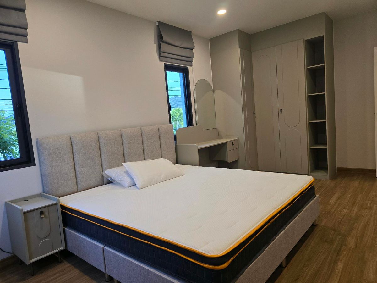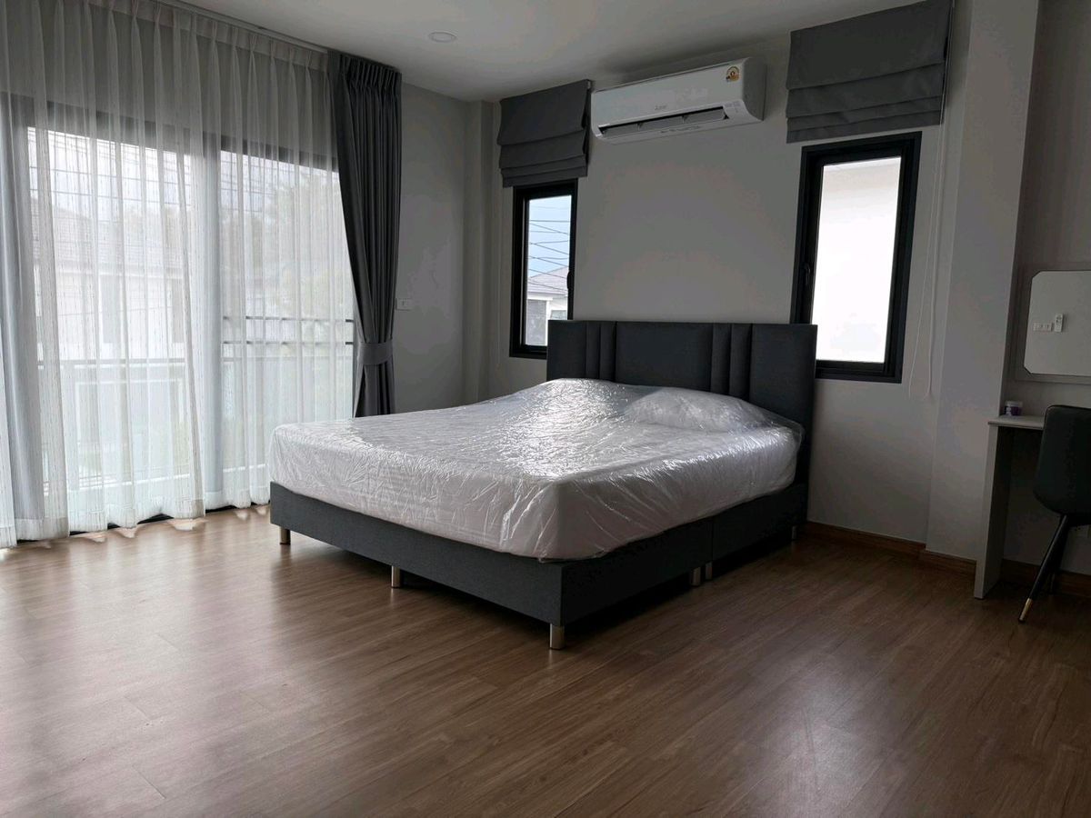 On the main road in front of the project near the clubhouse. Corner house, 63 sq.wa. of land. Double Bliss house model, largest house. Usable area: 274 sq m. • 4 bedrooms • 6 bathrooms • 1 kitchen • 2 living rooms/common areas • 3 covered parking spaces • 1 maid's room Project common areas • Clubhouse • Co-working Space • Adult-children's swimming pool • Fitness • Badminton court, basketball court, playground • Large village garden, shady atmosphere • 24-hour security guard Convenient transportation Nearby places: - Red Line BTS, Don Mueang Station - Don Mueang Airport - Harrow International School - Sacred Heart School - St. Francis School - Rangsit University - Kasetsart University - Near many shopping areas ✴️Special Price‼️Only for owner post ✅️ 1-year contract: 84,000 baht per month 2-year contract: 80,000 baht per month 3-year contract: 76,000 baht per month 2-month security deposit + 1 month advance payment 🔥Available for short-term rental. House fully furnished and ready to move in. Includes a bed for 7 guests. Free Wi-Fi. 1-2 month contract: 95,000 baht per month 3-5 month contract: 91,000 baht per month 6+ month contract: 87,000 baht per month Minimum 1-month contract 1 month security deposit + 1 month advance payment **This is the owner post** Interested/inquire for more information, please contact Tel: Contact number Eve Line: eaff2831