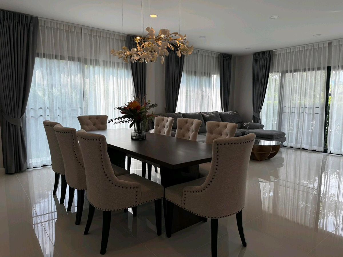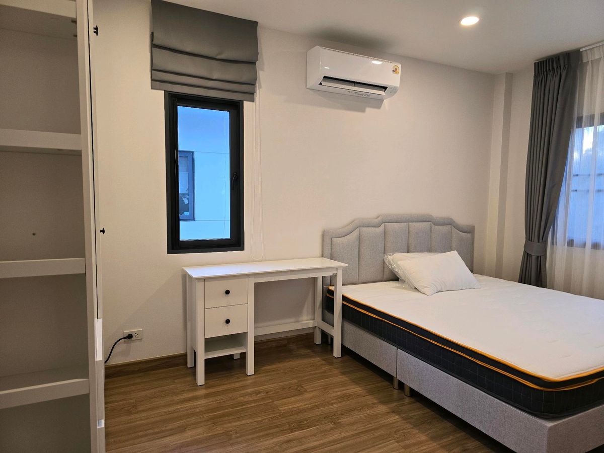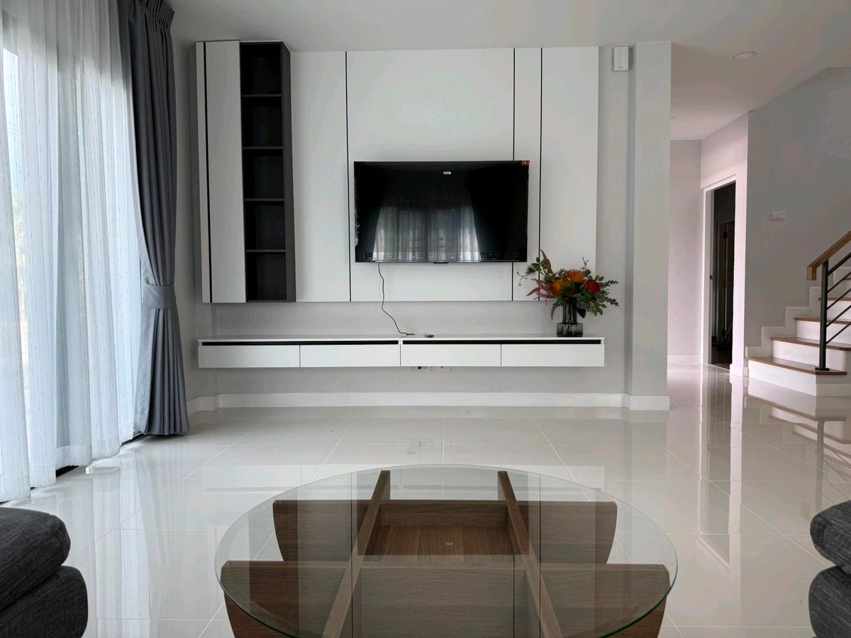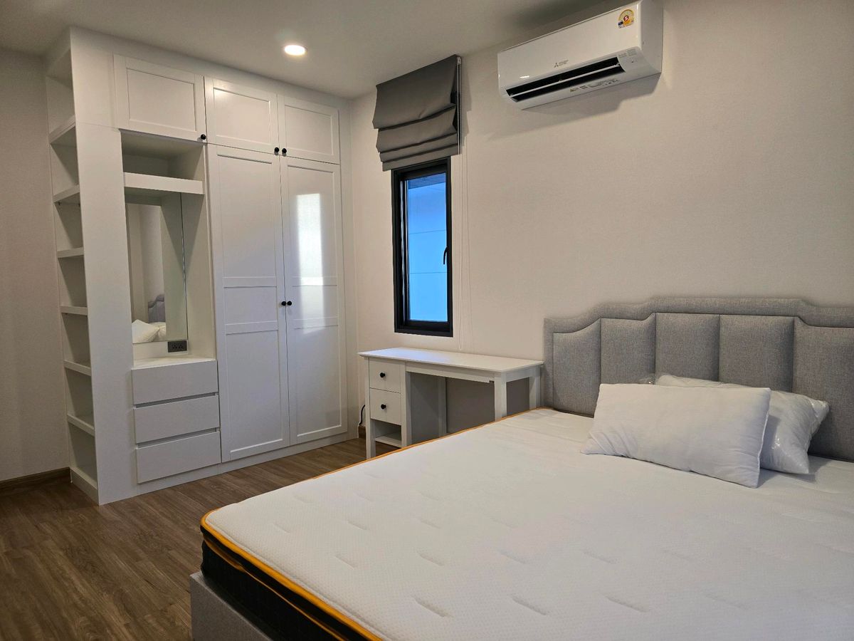 On the main road in front of the project near the clubhouse. Corner house, 63 sq.wa. of land. Double Bliss house model, largest house. Usable area: 274 sq m. • 4 bedrooms • 6 bathrooms • 1 kitchen • 2 living rooms/common areas • 3 covered parking spaces • 1 maid's room Project common areas • Clubhouse • Co-working Space • Adult-children's swimming pool • Fitness • Badminton court, basketball court, playground • Large village garden, shady atmosphere • 24-hour security guard Convenient transportation Nearby places: - Red Line BTS, Don Mueang Station - Don Mueang Airport - Harrow International School - Sacred Heart School - St. Francis School - Rangsit University - Kasetsart University - Near many shopping areas ✴️Special Price‼️Only for owner post ✅️ 1-year contract: 84,000 baht per month 2-year contract: 80,000 baht per month 3-year contract: 76,000 baht per month 2-month security deposit + 1 month advance payment 🔥Available for short-term rental. House fully furnished and ready to move in. Includes a bed for 7 guests. Free Wi-Fi. 1-2 month contract: 95,000 baht per month 3-5 month contract: 91,000 baht per month 6+ month contract: 87,000 baht per month Minimum 1-month contract 1 month security deposit + 1 month advance payment **This is the owner post** Interested/inquire for more information, please contact Tel: Contact number Eve Line: eaff2831