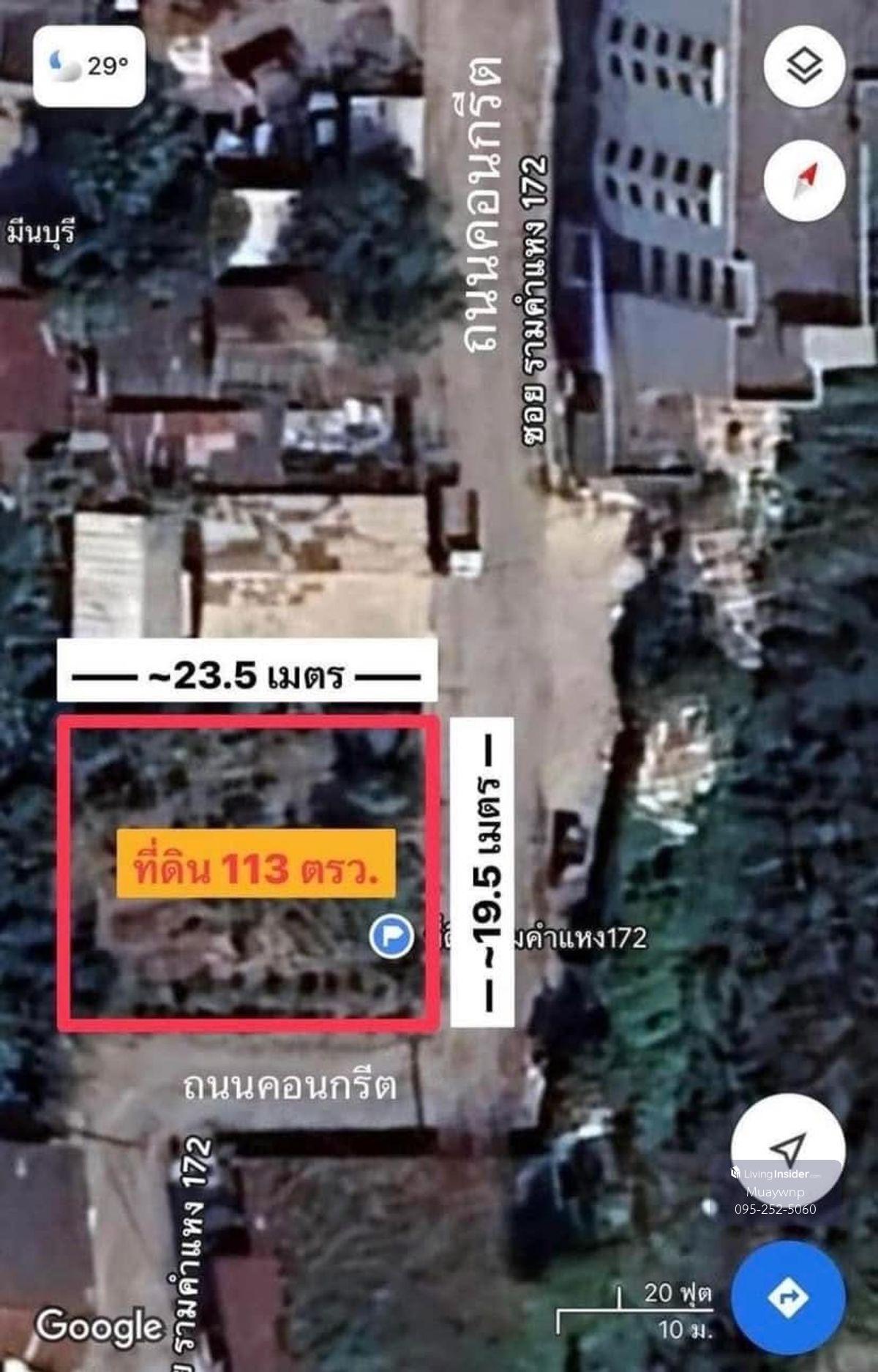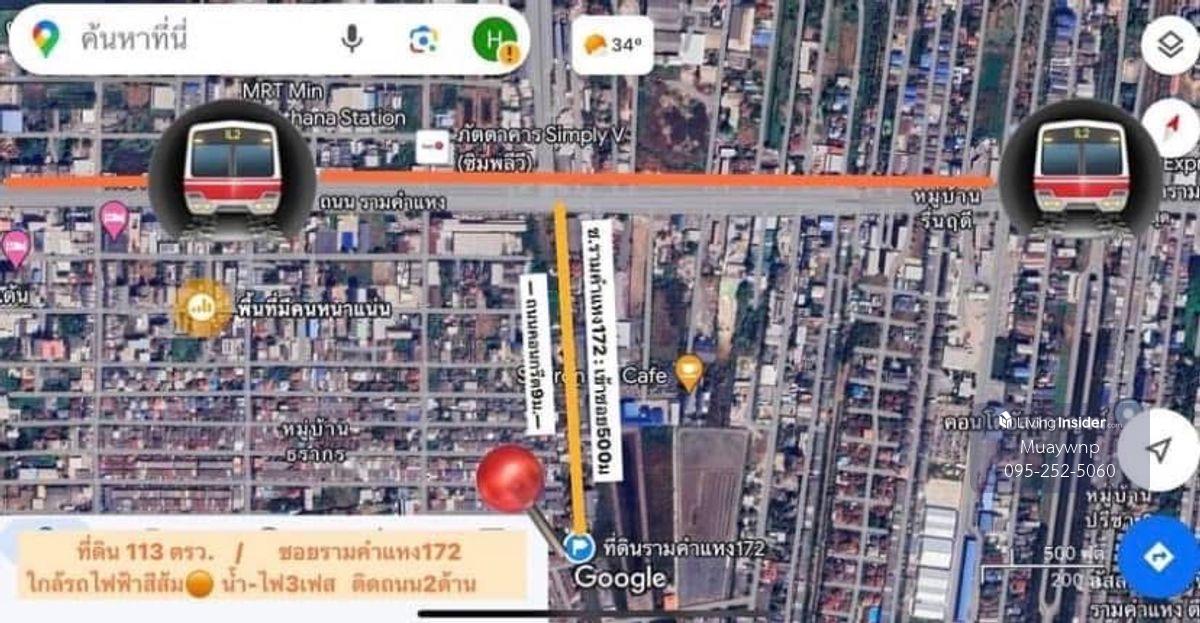 Sell cheap land filling and convert corners of Soi Ramkhamhaeng 172, an area of 113 sq.w., into the alley 500 meters 39,900/sq.w. Near the orange road, 2 on the road, concrete road, 9 meters wide, 3 phase/water supply Through the soil Size (approximately): Width 19.5 meters long, 23.5 m Plane: Turn to the northeast ❌ Discounted from 55,000 per square wah ❌ 50/50 Reasons for sale: Need money to expand the business Convenient transportation 2 minutes: 2 orange stations = Min Pattana Station Ramkhamhaeng Housing Station 2.0 km. : HomePro, Lotus, Big C (Sukhaphiban 3) 3.0 km. : Nawamin Hospital 3.5 km. : Triam Udom Suksa School Min Buri Market 4.0 km. : Motorway up and down, Heatfield International School 5.0 km. : Setthabutjan School, Suan Siam 6.0 km. : Kasemrad Hospital Ramkhamhaeng  Interested in contacting at all: Line: Homemix Contact number Contact number #Ramkhamhaeng Land for sale #Ramkhamhaeng Land for sale 172 #Sell at Di Thom #Bangkok land for sale #Land for sale near the train #Cheap land for sale #Ramkhamhaeng Land #Ramkhamhaeng Land 172 #Ramkhamhaeng Land #Ramkhamhaeng Land 172 #Ramkhamhaeng Land #Beautiful land #Cheap land #Land ready to build a house