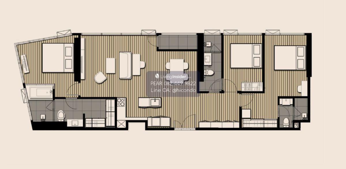 ✨ Rent 3 bedrooms, 3 bathrooms, new room, just transfer! 📍 The 23rd floor of the COCO PARC-BraNed Residence Under the hotel management from Dusit Thani 📐 Size 101.5 sq.m. 💸 Rental fee of only 150,000